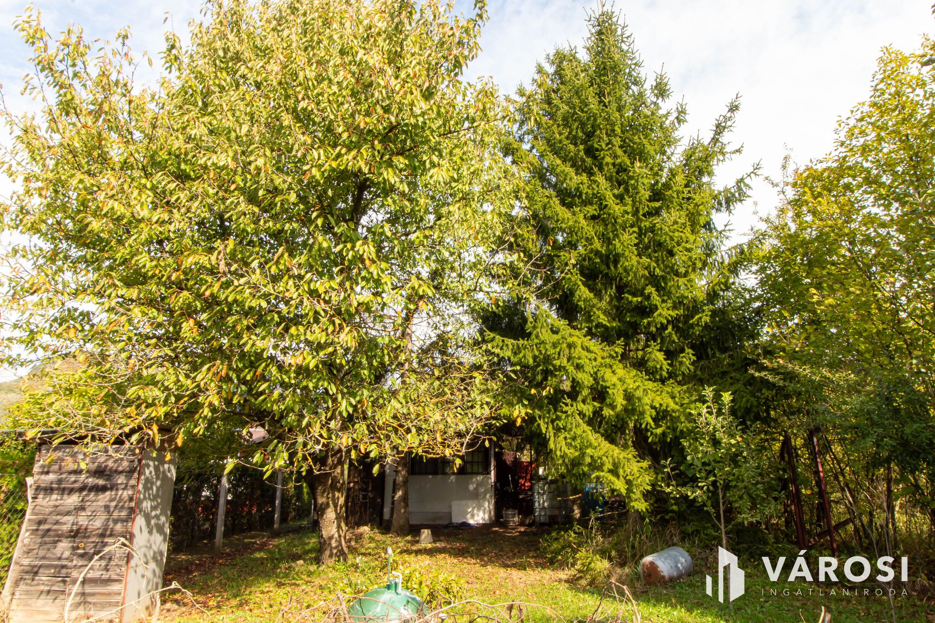 A gondozott területen többféle termő gyümölcsfa – alma, körte, cseresznye és szilva – is megtalálható, így akár egy önfenntartó kis birtok kialakítására is lehetőség nyílik.