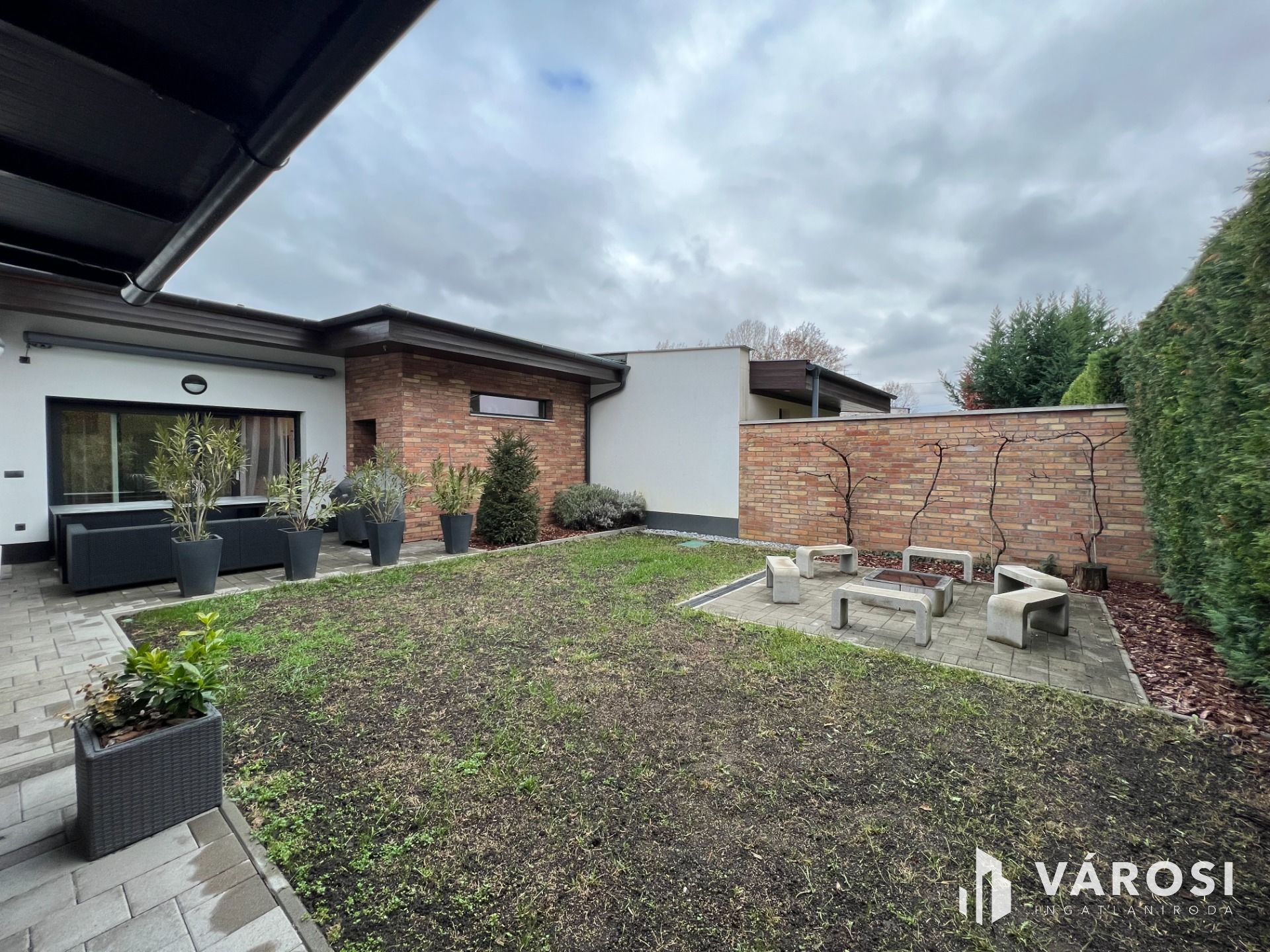 Itt egy kényelmes terasz, modern automata locsolórendszerrel kiépített kert, épített grillezőhely, teszi kényelmessé otthonunkat.
