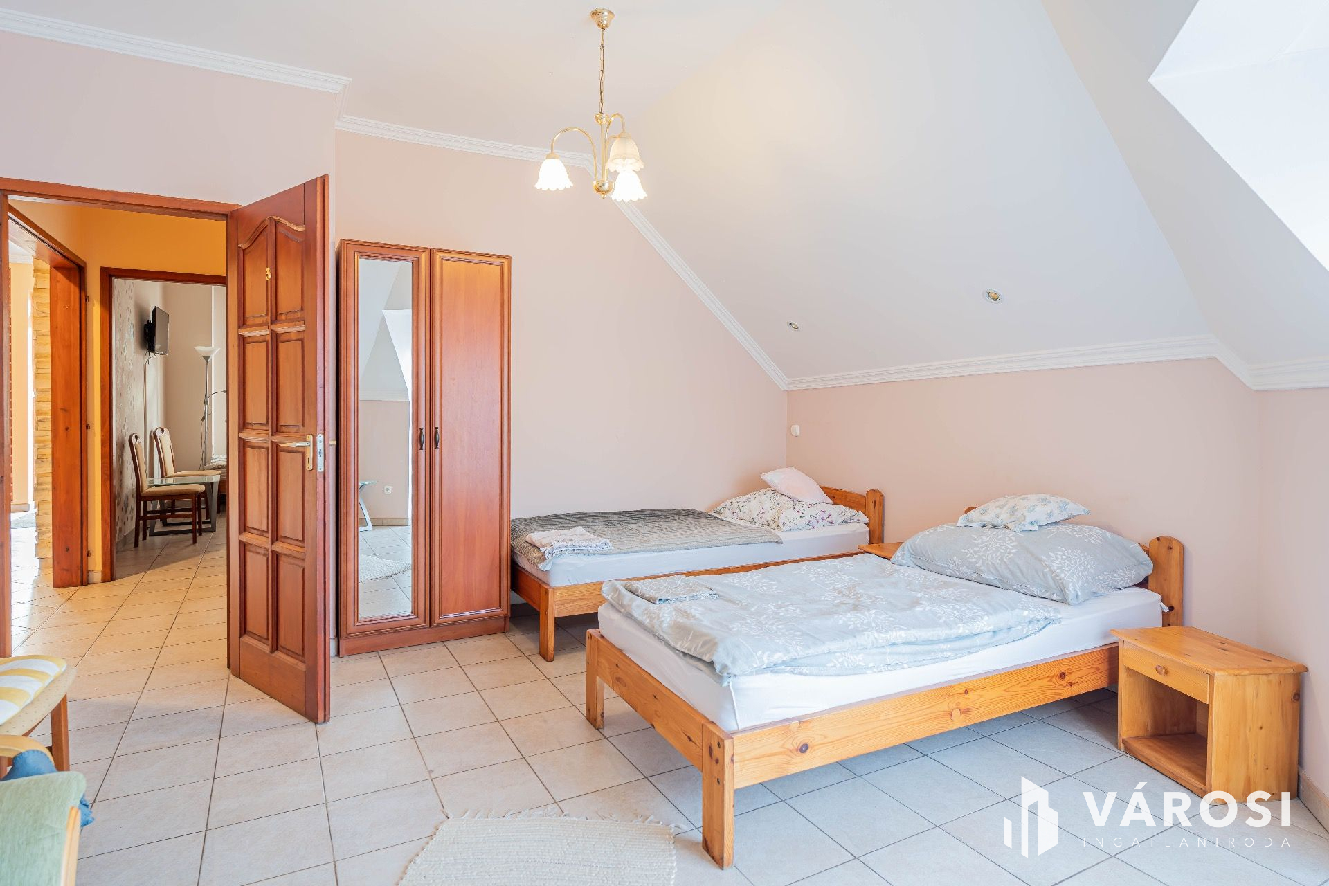 Az emeleten egy panzió üzemelt 5 darab különálló szobával, két 3 ágyas és három 2 ágyas szoba. Valamint három darab különálló fürdőszoba és egy mini teakonyha található. A szobák klimatizáltak és ablakai redőnyözöttek.