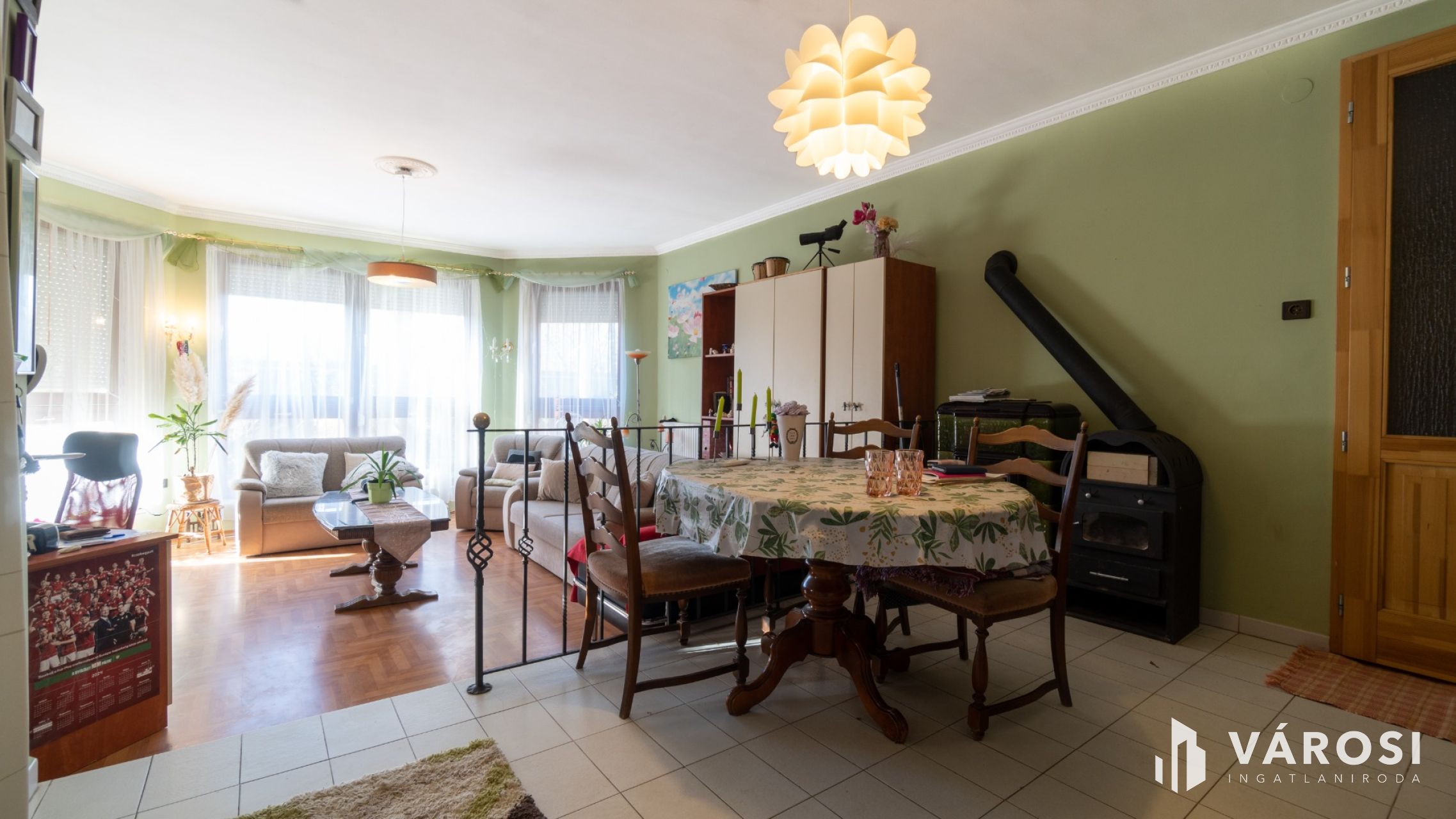 A 9 szoba és 2 nappali mellett 5 fürdőszoba található az épületben, így kényelmesen elfér itt egy nagyobb család is. Az ingatlan egy csendes utcában helyezkedik el, így a nyugodt pihenés biztosított. A ház felszerelt, jó közlekedéssel rendelkezik. A nyílászárók egy része műanyagra cserélt, a másik része fa, mindegyik redőnnyel felszerelt. A fűtés gáz cirkó kazánnal történik, radiátoros hőleadással. A kellemes hőérzetet a meleg nyári napokon 2 darab klíma biztosítja.