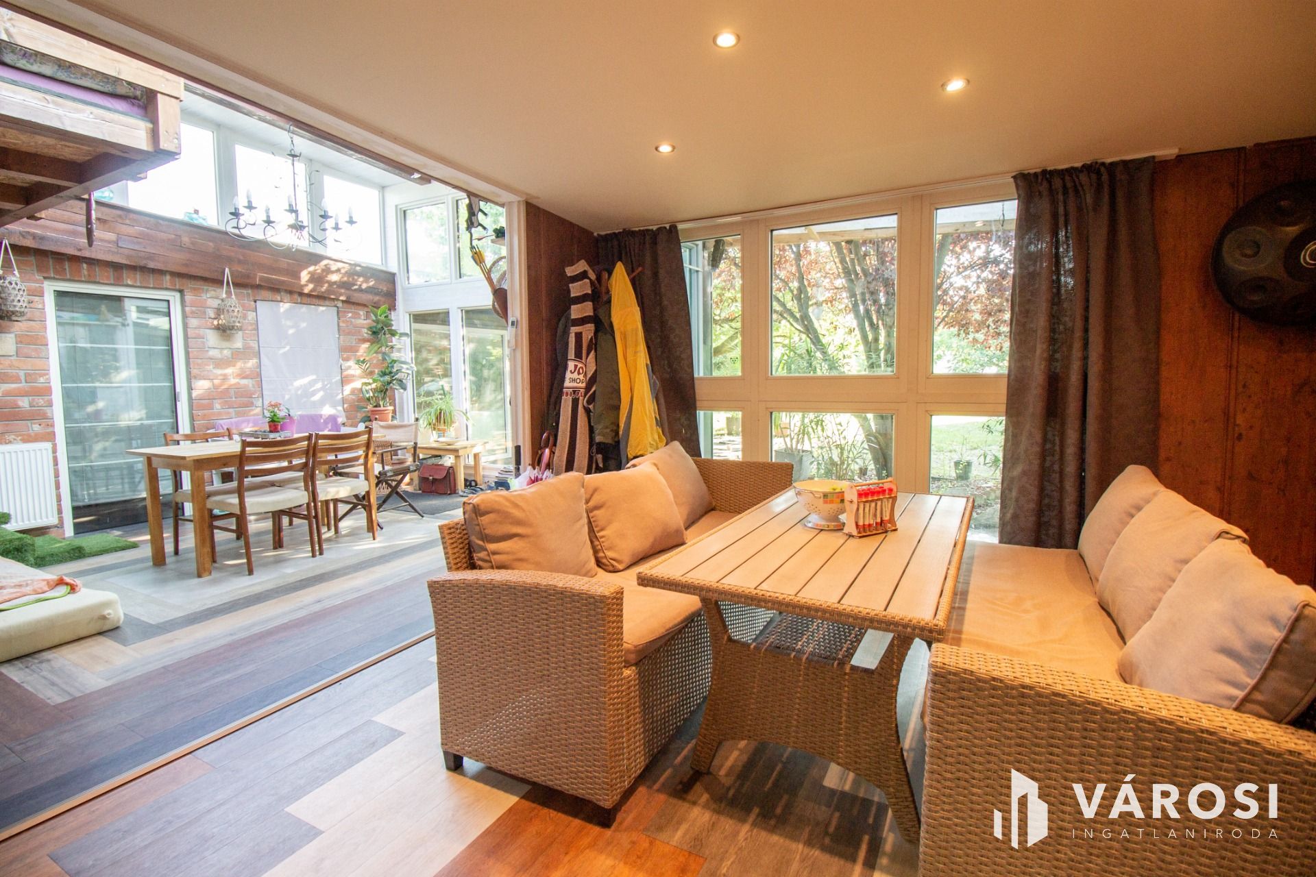 A házhoz tartozik egy gyönyörű, parkosított udvar, ahol automata öntözőrendszer gondoskodik a mindig zöld gyepről. A napfényes terasz ideális helyszín a reggeli kávézásokhoz vagy az esti lazításhoz. Nyári grillpartikat a kerti grillezőhely és a kemence teszik felejthetetlenné.