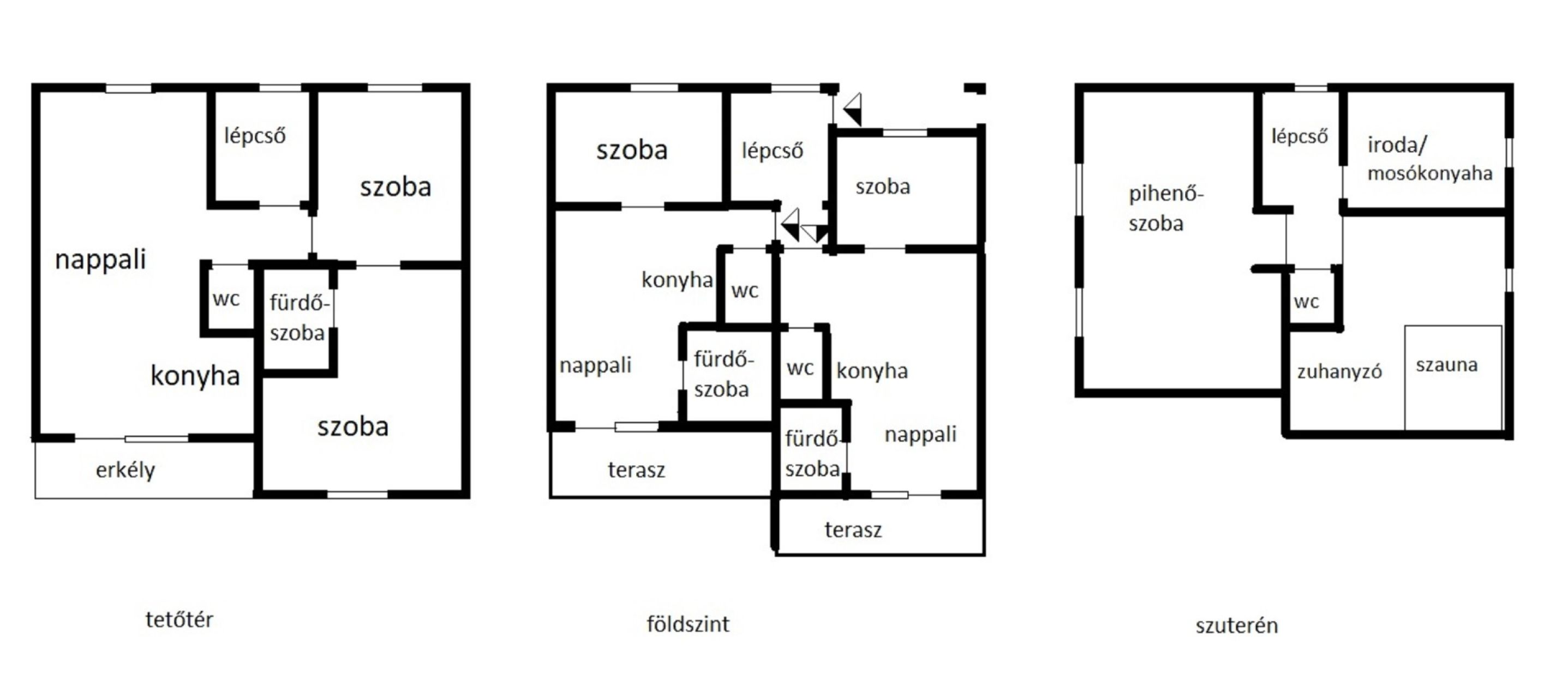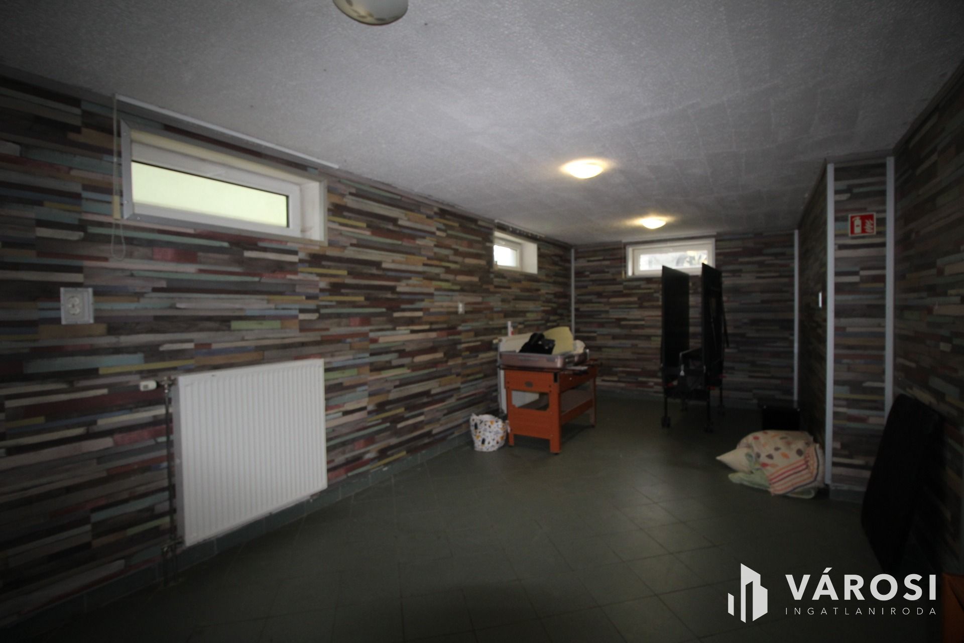 A 60 nm-es szuterénben egy tágas pihenő / hobbi szoba egy iroda/mosókonyha és egy szauna helyiség is kialakításra került a hozzá tartozó wc-vel és zuhanyzóval.