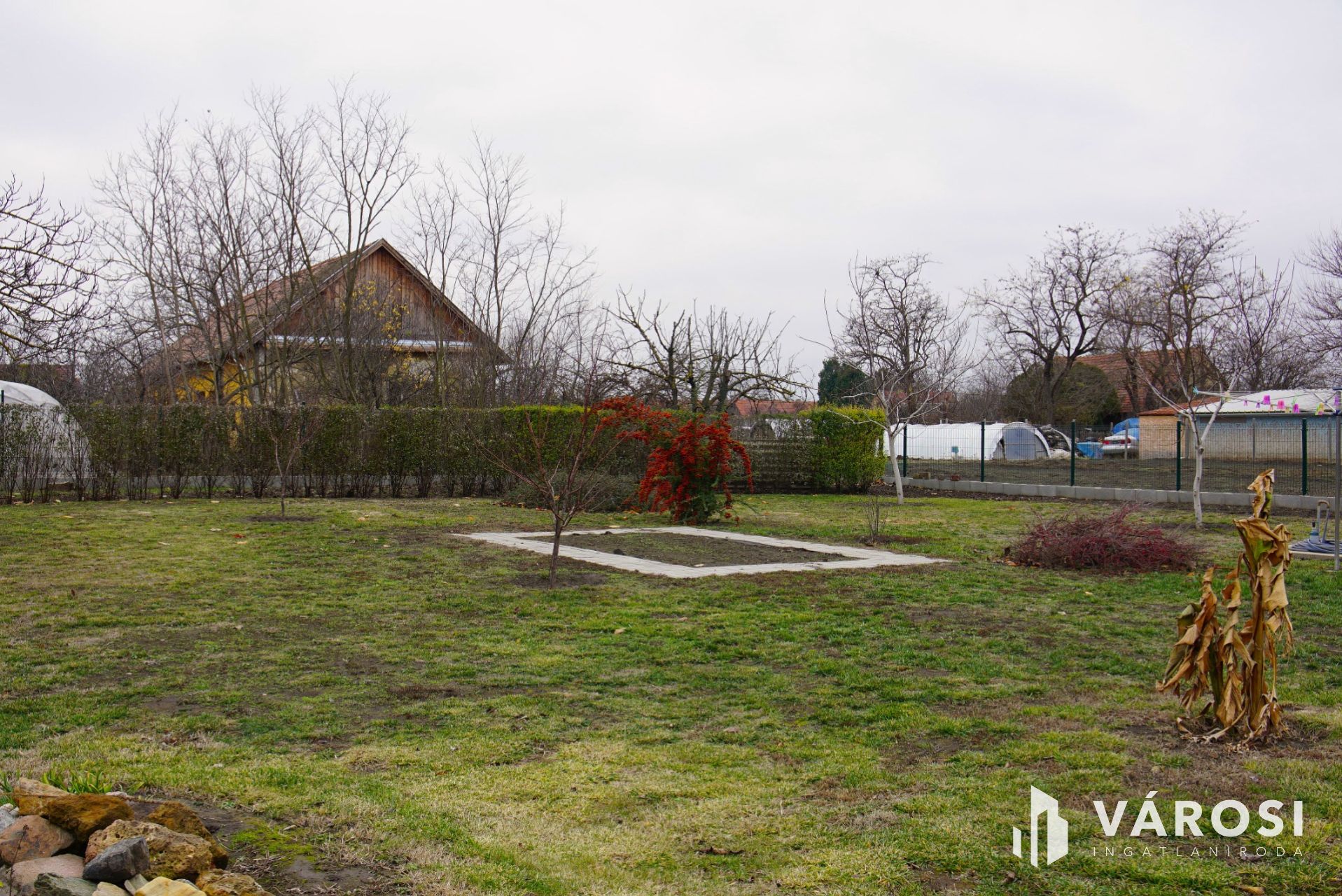 Entering through the front door, you arrive in a spacious entryway, from which three bedrooms open. The largest of these is 20 sqm and could easily serve as a second living room. To the left, you’ll find a 15 sqm hall fitted with a large wardrobe, from where you can access the bathroom and utility room, which also houses the heating system. From the hall, a wide, doorless opening leads into the huge, nearly 43 sqm L-shaped living room with kitchen. The kitchen is very practically designed—while it is in the same open space as the living room, its L-shape ensures that kitchen activities and living room activities do not disturb each other. If you open the door to the 40 sqm terrace, you create a massive 80 sqm space from the kitchen to the garden, perfect for family and friends' gatherings in maximum comfort! And there’s more: from the living room, another bedroom opens, which could serve as a study, guest room, or anything else you wish. The bedrooms have laminate flooring, while the living room, kitchen, entryway, bathroom, and utility room have tile flooring. Heating is provided by a combi boiler with radiators, but the air conditioning can also be used for heating. Thanks to the insulation, heating costs are extremely low: in winter, the gas bill is only 10,000 HUF, and in summer just 3,000 HUF.