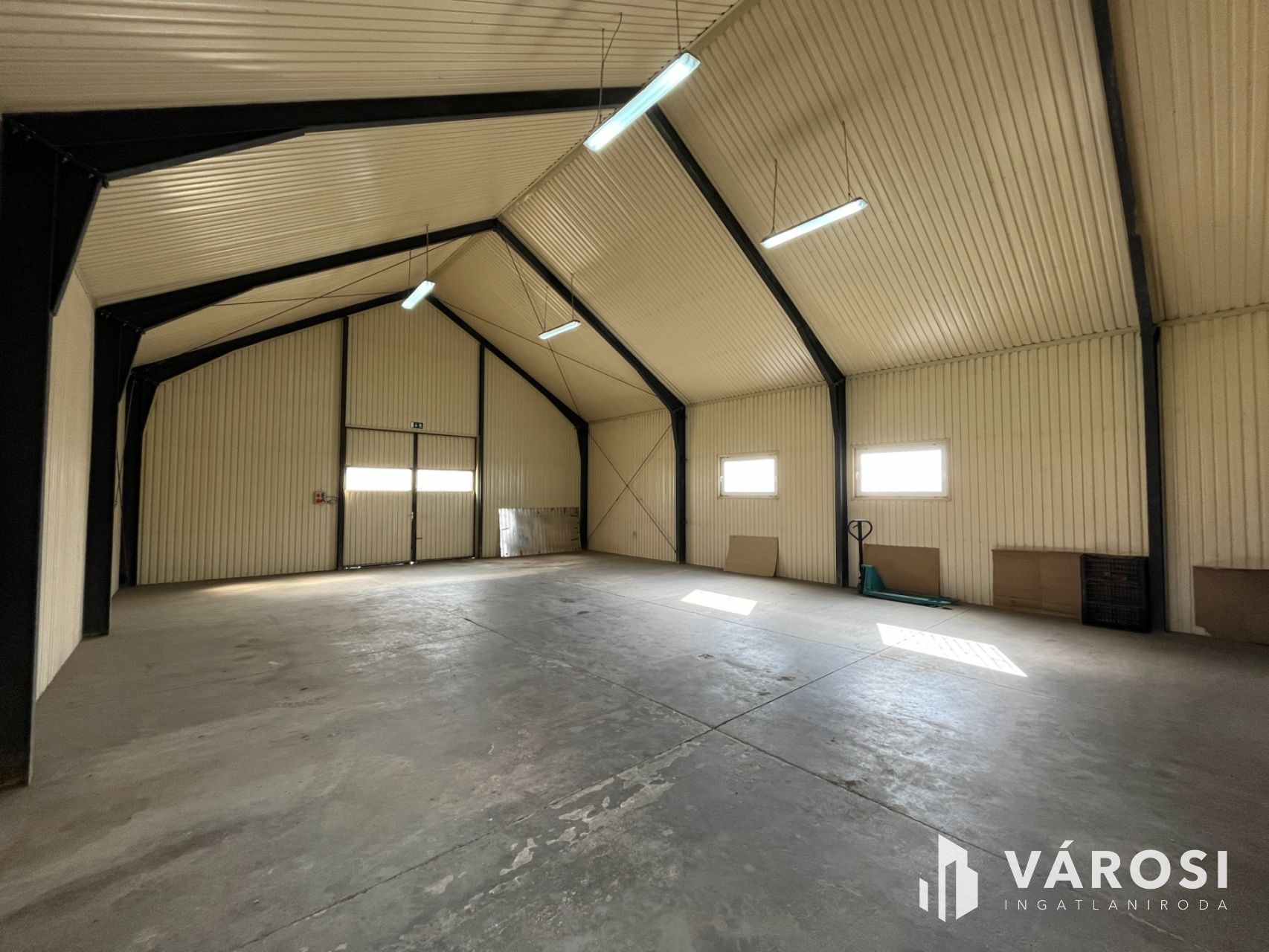 A csarnok hőszigeteléssel rendelkezik, amely hozzájárul a költséghatékony fenntartáshoz, míg a háromfázisú áramellátás széleskörű elektromos felhasználási lehetőségeket biztosít.