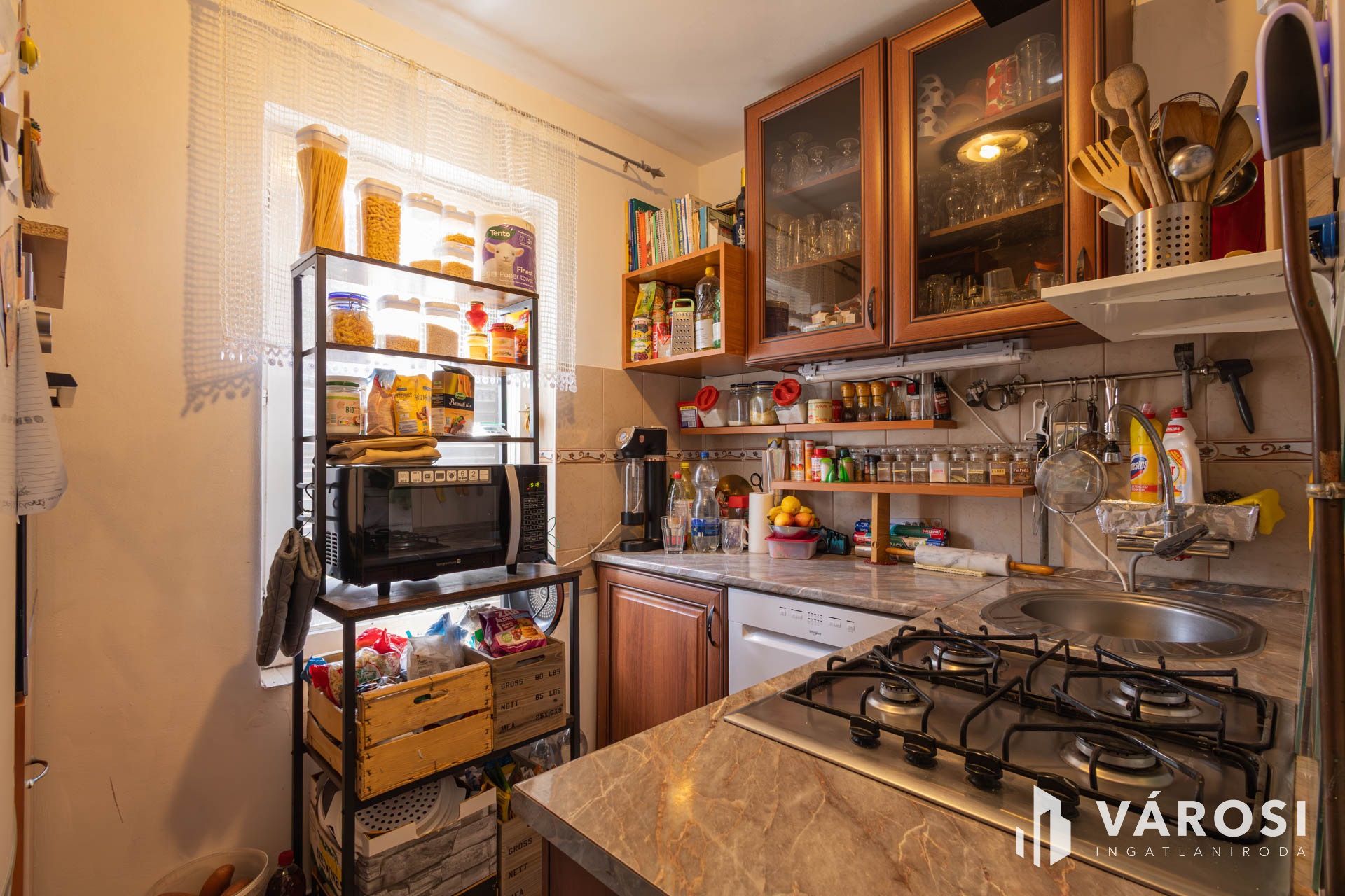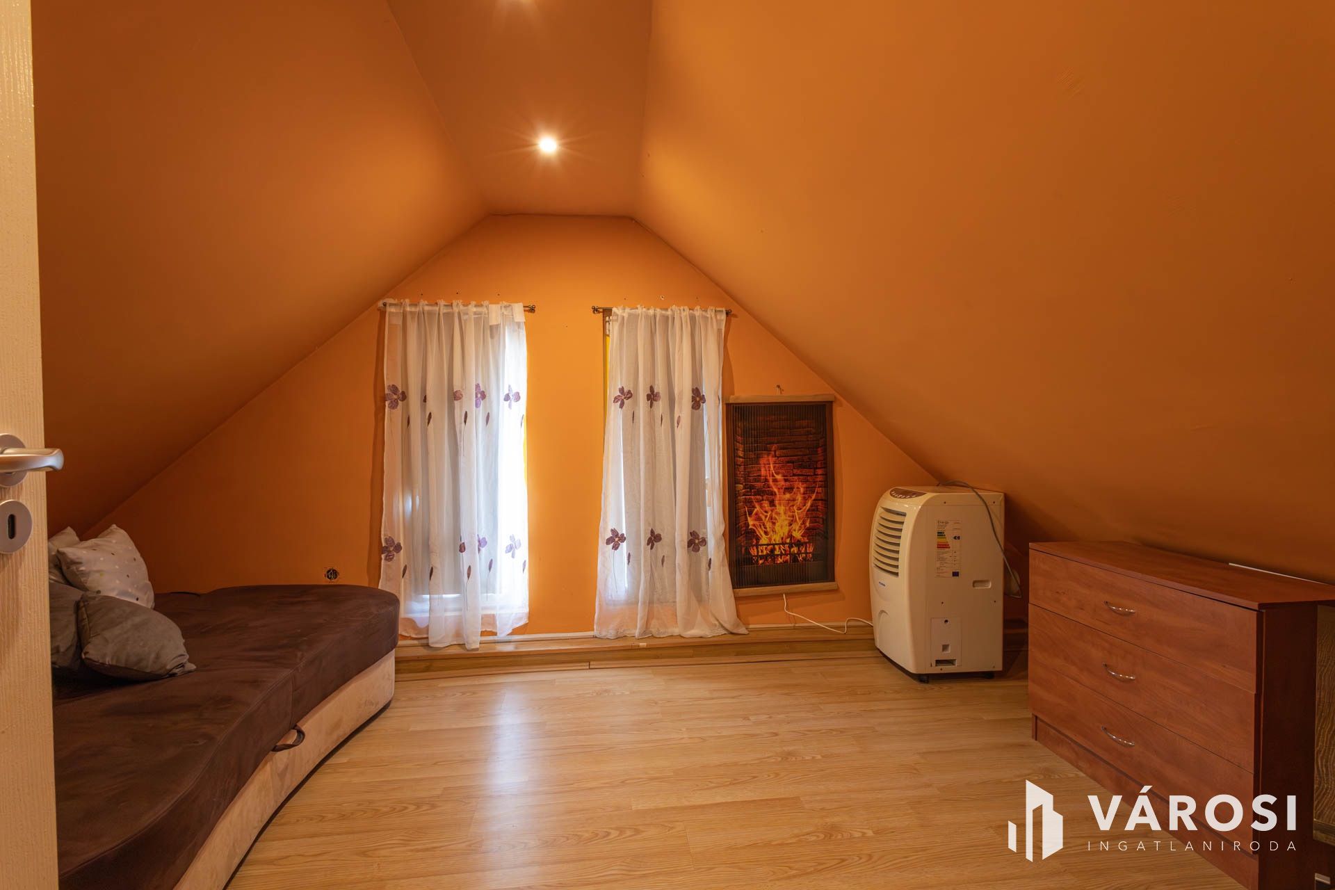 A földszinti részen egy hangulatos nappali, konyha, fürdőszoba és különálló wc kapott helyett. Az új nyílászáróknak, az új villamoshálózatnak köszönhetően komfortos és energiatakarékos lakhatást biztosít. A nappaliban hűtő-fűtő klíma biztosítja a komfortos hőmérsékletet, viszont a hideg téli estéken a kandallóba begyújtva hallgathatjuk a fa ropogását is. Minden ablak szúnyoghálóval ellátott, így a nyári estéken zavartalanul élvezheti a friss levegőt.