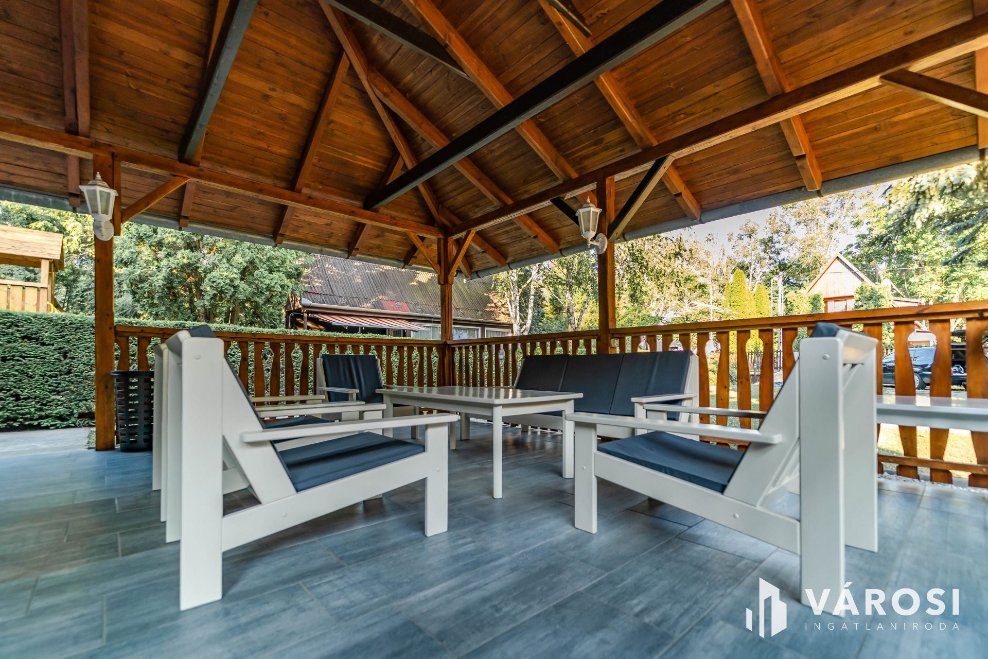 A 2089 m²-es, parkosított telken medence, jakuzzi, kemence és hangulatos kerti pihenőhelyek szolgálják a kikapcsolódást, emellett zárt parkolási lehetőség és wifi is biztosított. Az ingatlan teljes berendezéssel és kültéri tartozékokkal együtt kerül értékesítésre.