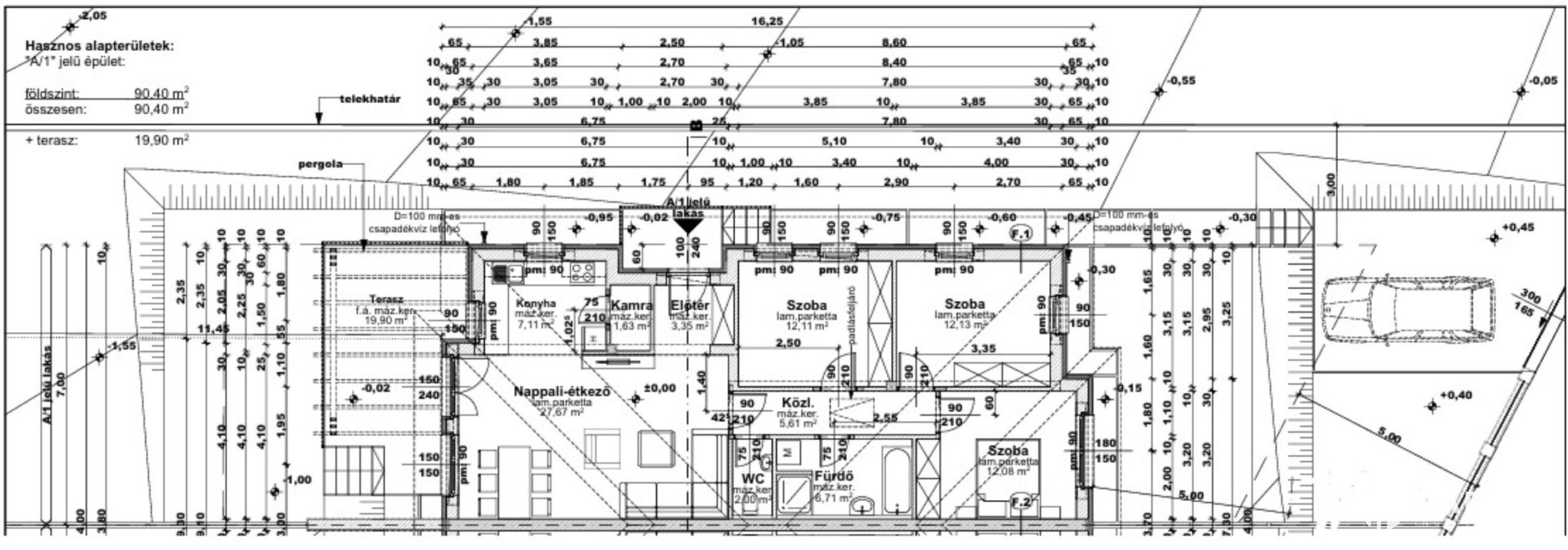 A 20 m²-es terasz ideális helyszíne lehet a pihenésnek és a családi összejöveteleknek.