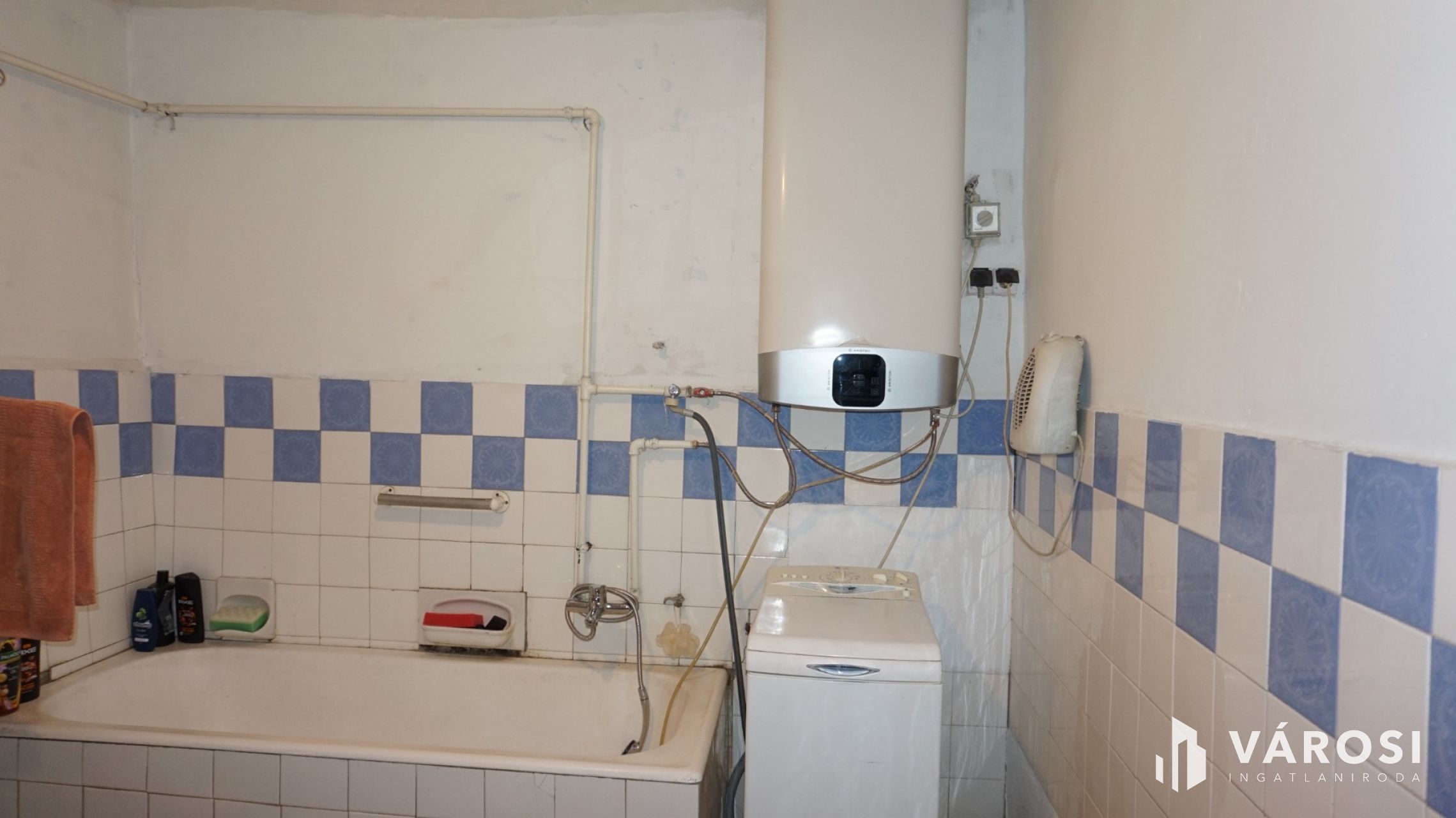 -A meleg vizet villanybojler szolgáltatja, mely a fürdőben található