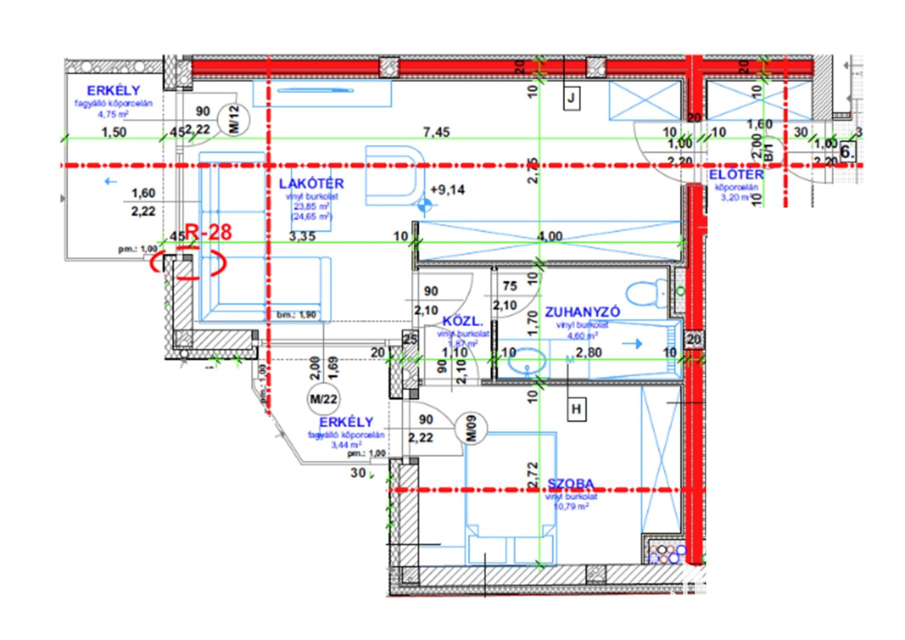 1.a Lakás 38,45 m2 +3,23 m2 (erkély)