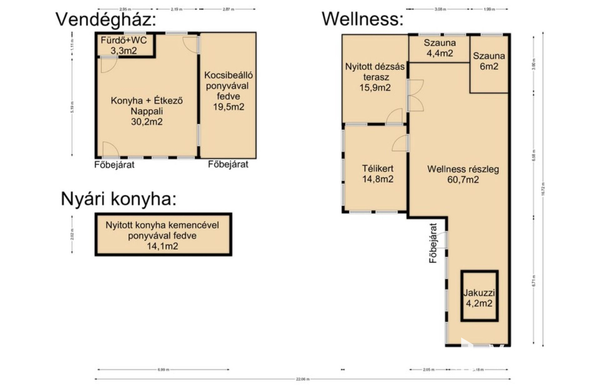 Nagy négyzetméterrel rendelkező, több helységből álló épület, hangulatvilágítással, számos wellness lehetőséggel. ( 5 fős Jakuzzi , Infar és Finn szauna, panorámás kilátással, só-fal, 5-6 fős fa tüzelésű Dézsa nyitott teraszon panorámával, konditerem elektromosan elhúzható tetővel, sport pálya)