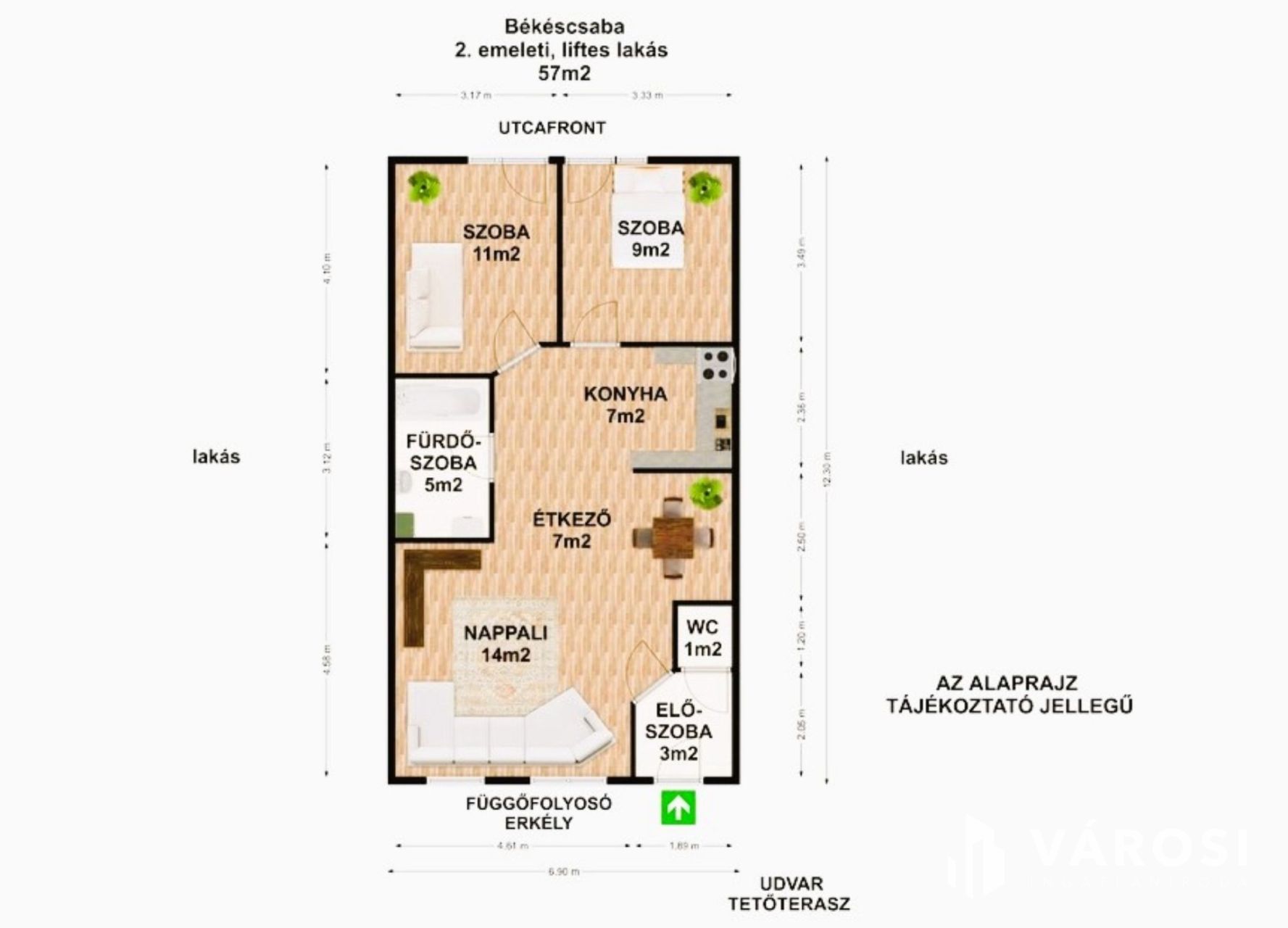 + Alapterülete 57 m², mely praktikus elosztása miatt kényelmes életteret biztosít.