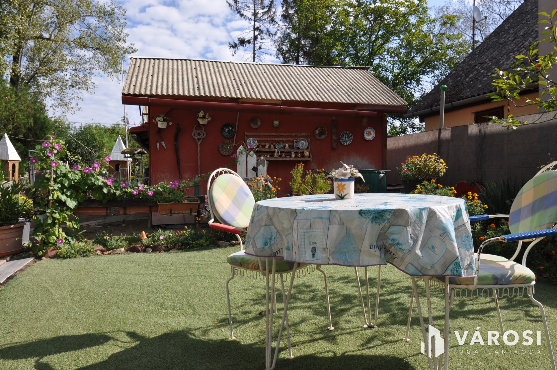 Emellett az ingatlanon található egy 12 m2 nagyságú szerszámos kamra, és egy hozzá épített kocsibeálló is, hogy az esetleges zord időjárás esetén is védett helyen legyen minden értékünk.