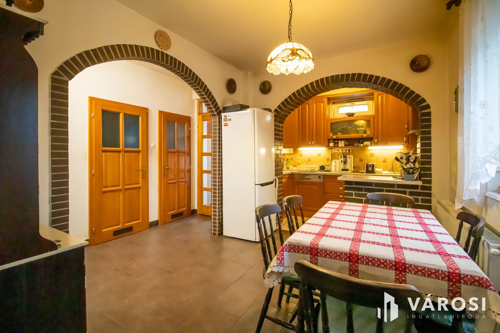 A méretre készült, beépített konyha olyan, mint amit minden háziasszony álmodik magának. Tágas, világos és korszerű gépekkel felszerelt. Ezek értelemszerűen maradnak és a következő tulajdonos számára könnyítik meg a házimunkát.
