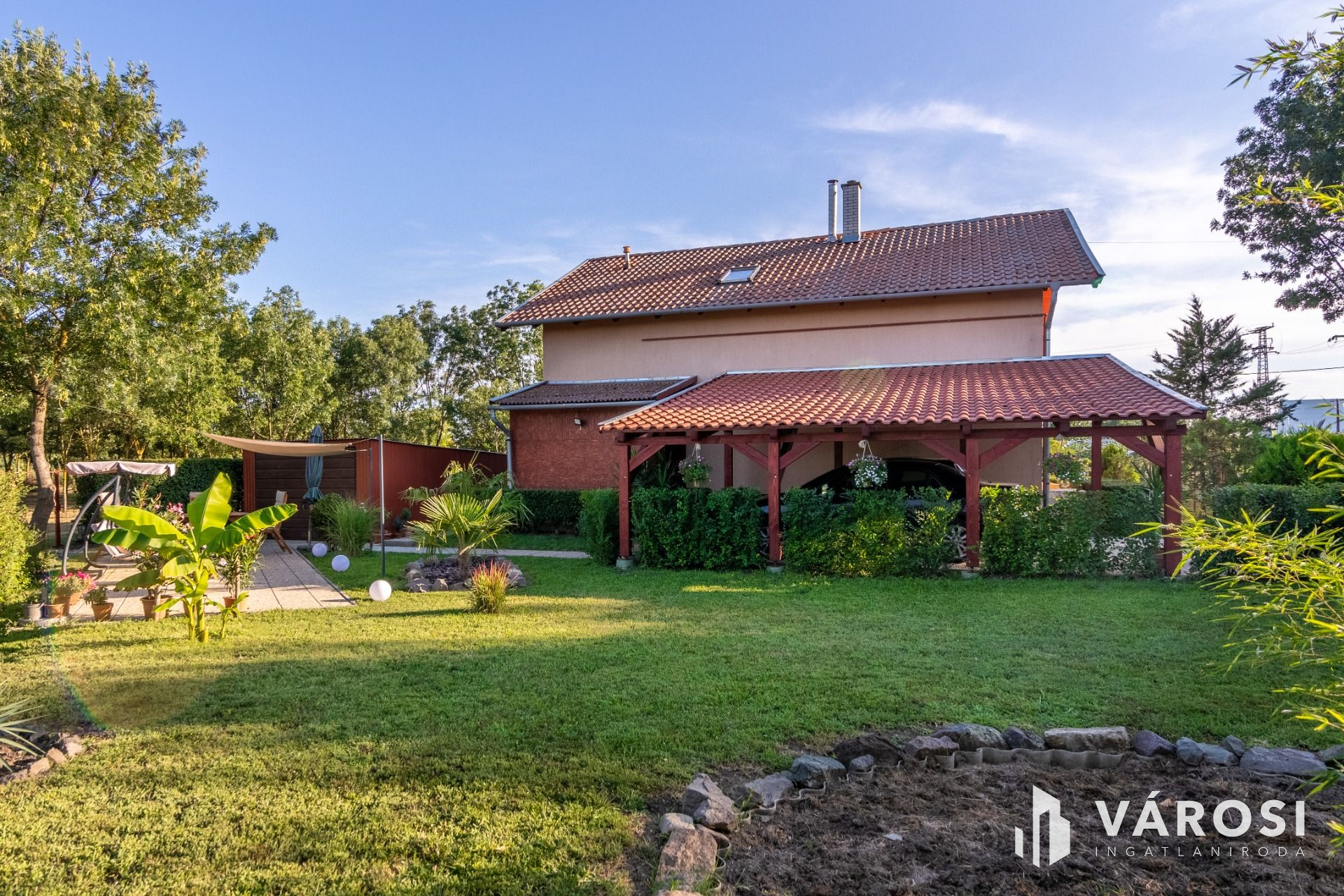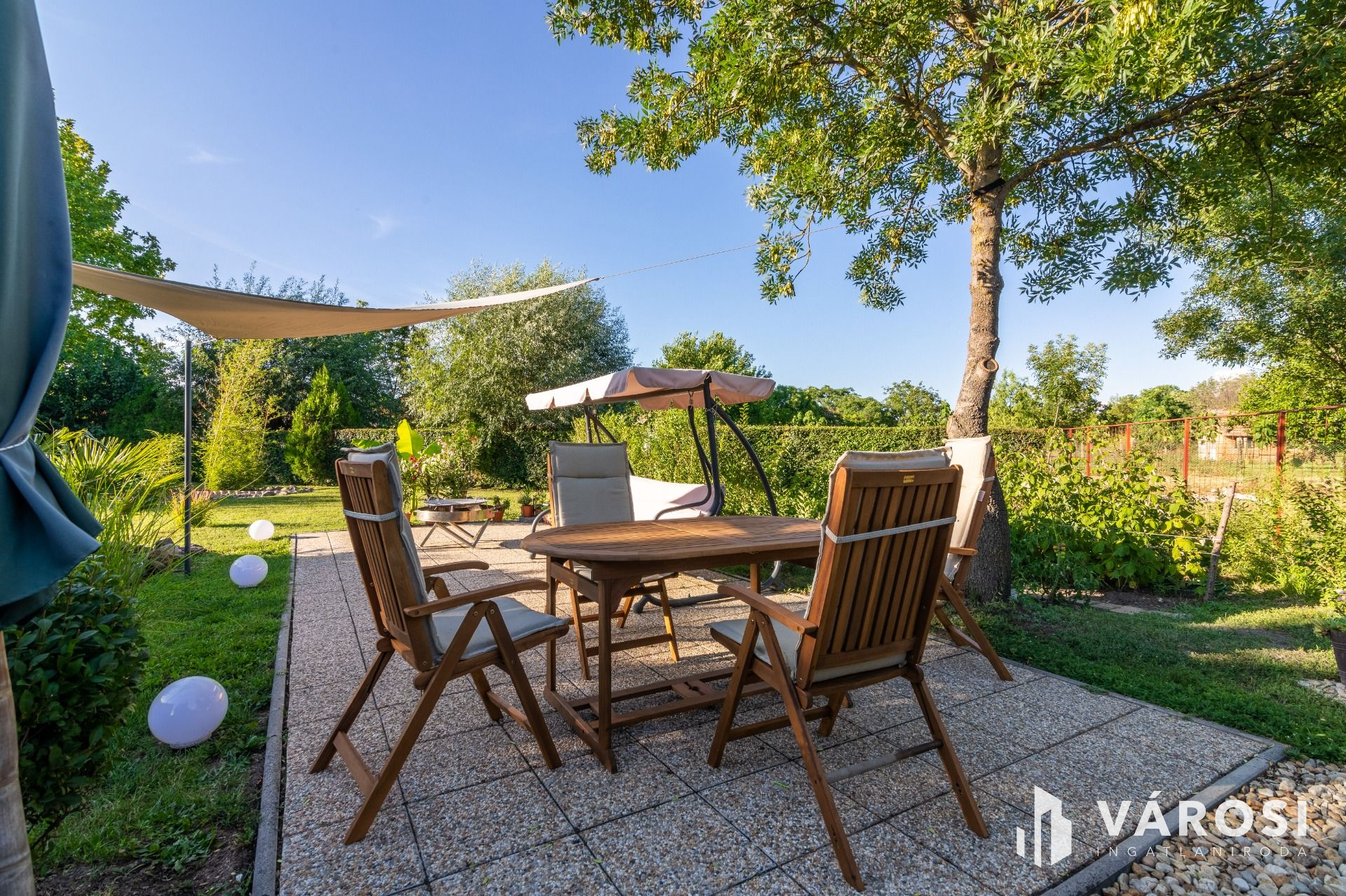 Az ingatlanhoz tartozik egy gyönyörű, mediterrán stílusú kert, ahol minden biztosított a pihenéshez vagy egy hangulatos grill partihoz is akár.