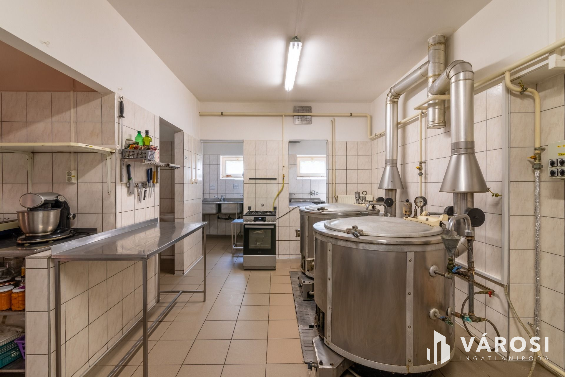 Az ingatlant építő család a ház alsó szintjén egy modern, minden feltételnek megfelelő éttermi konyhát üzemeltetett, ami bármikor újraindítható vagy átalakítható vendéglátás illetve élelmiszer előállítás céljából. Az előterében egy 40 m2 alapterületű panoráma ablakos vendégtér kapott helyet, ami szintén számos funkciót betölthet az új lakók kedve szerint. A ház és a főút között terül el egy 300 m2 alapterületű parkoló is.