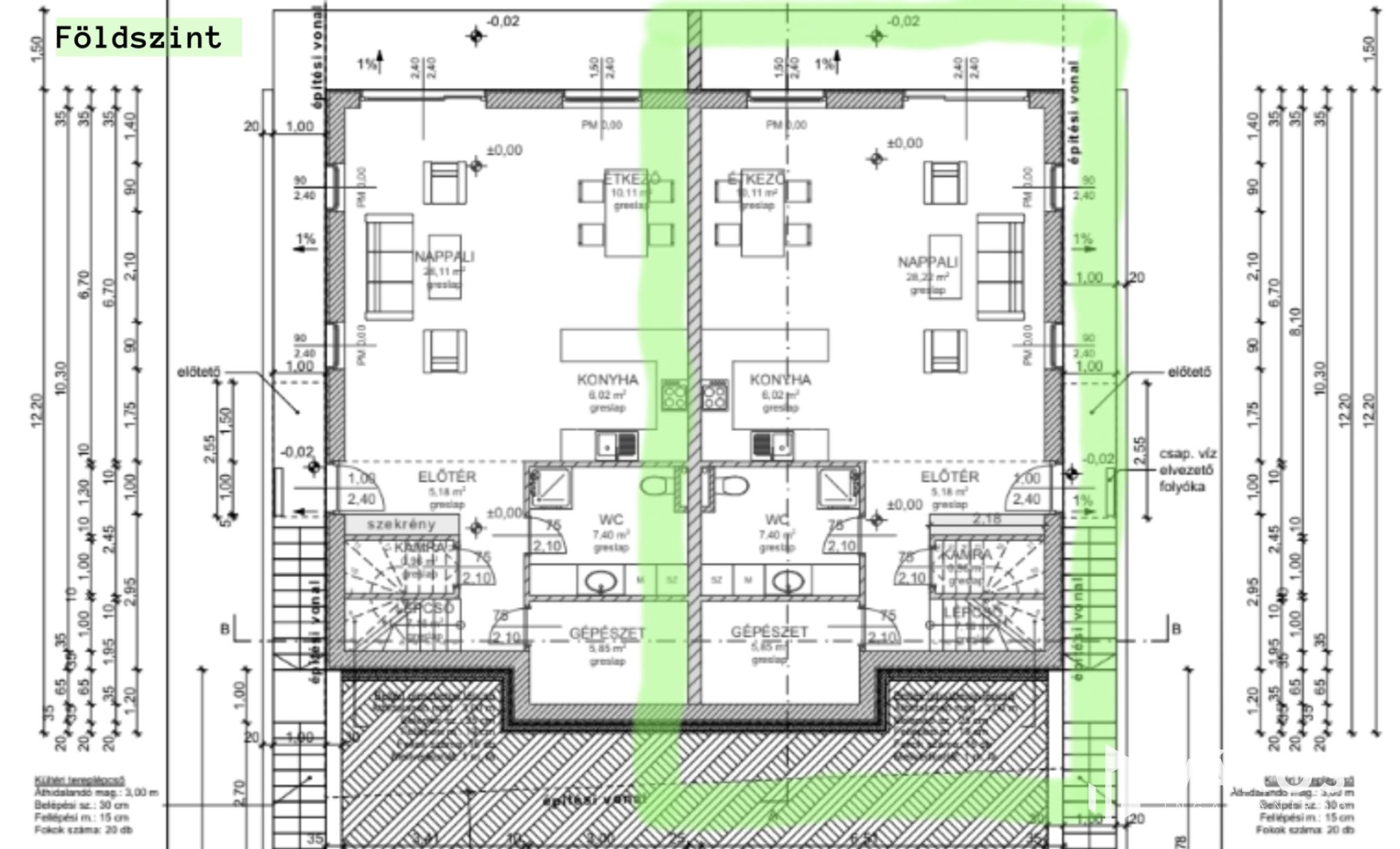 - Falazat: Ytong (30cm) + 10cm Drywit hőszigetelés