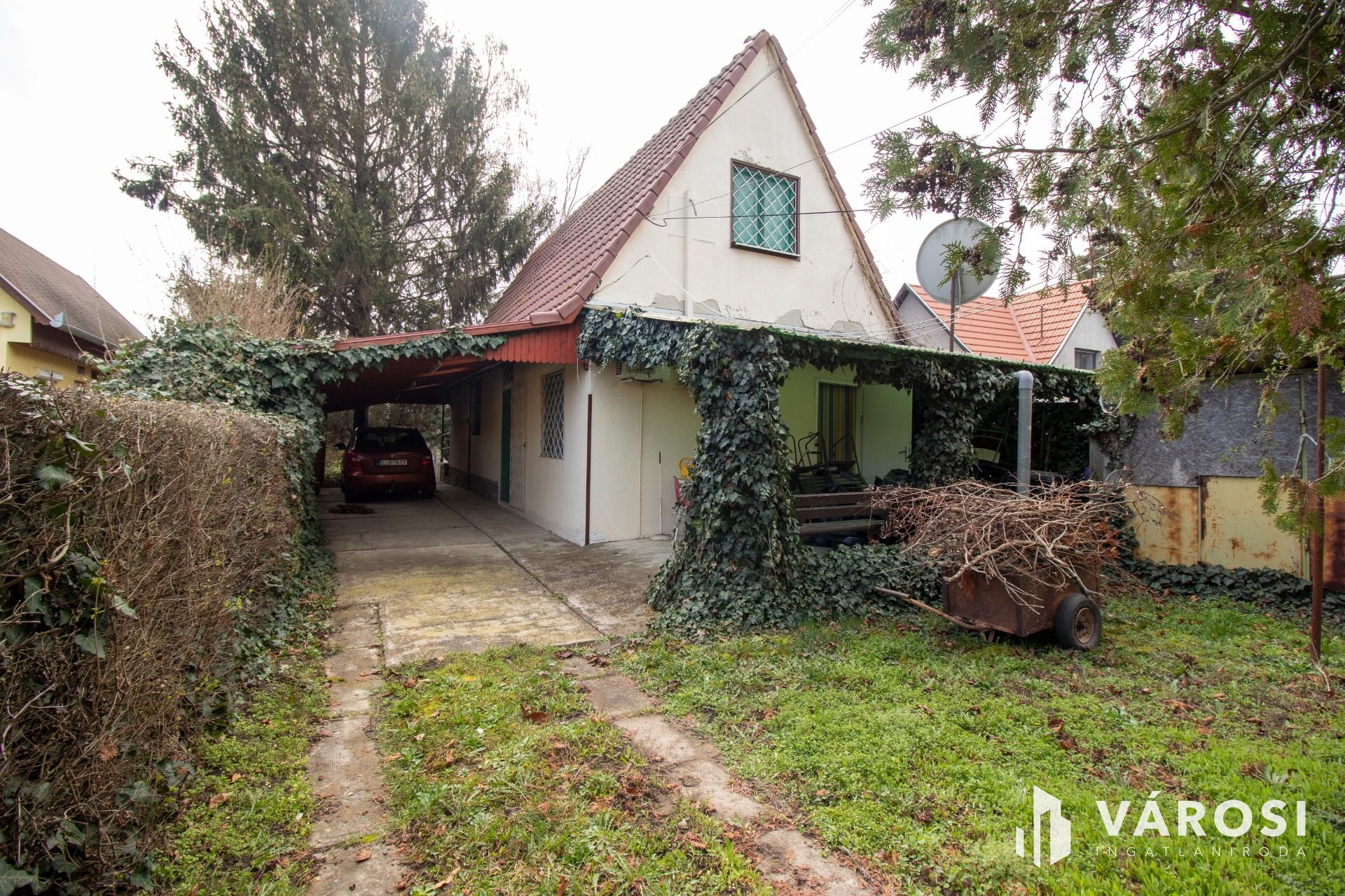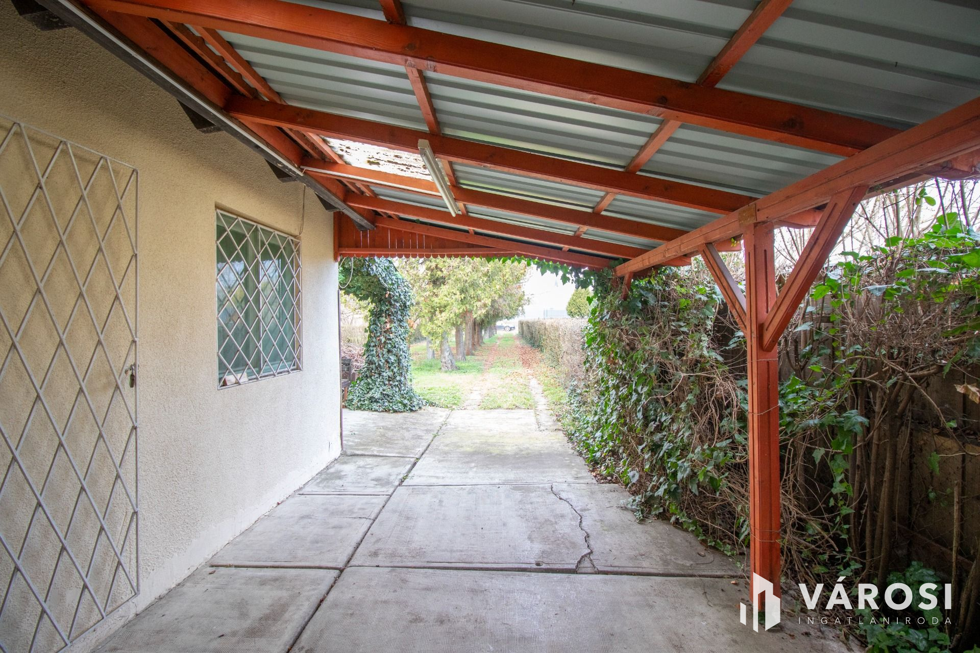Az épülethez két nagyméretű fedett terasz, illetve egy - akár három autó elhelyezésére is alkalmas - fedett gépkocsibeálló is tartozik.