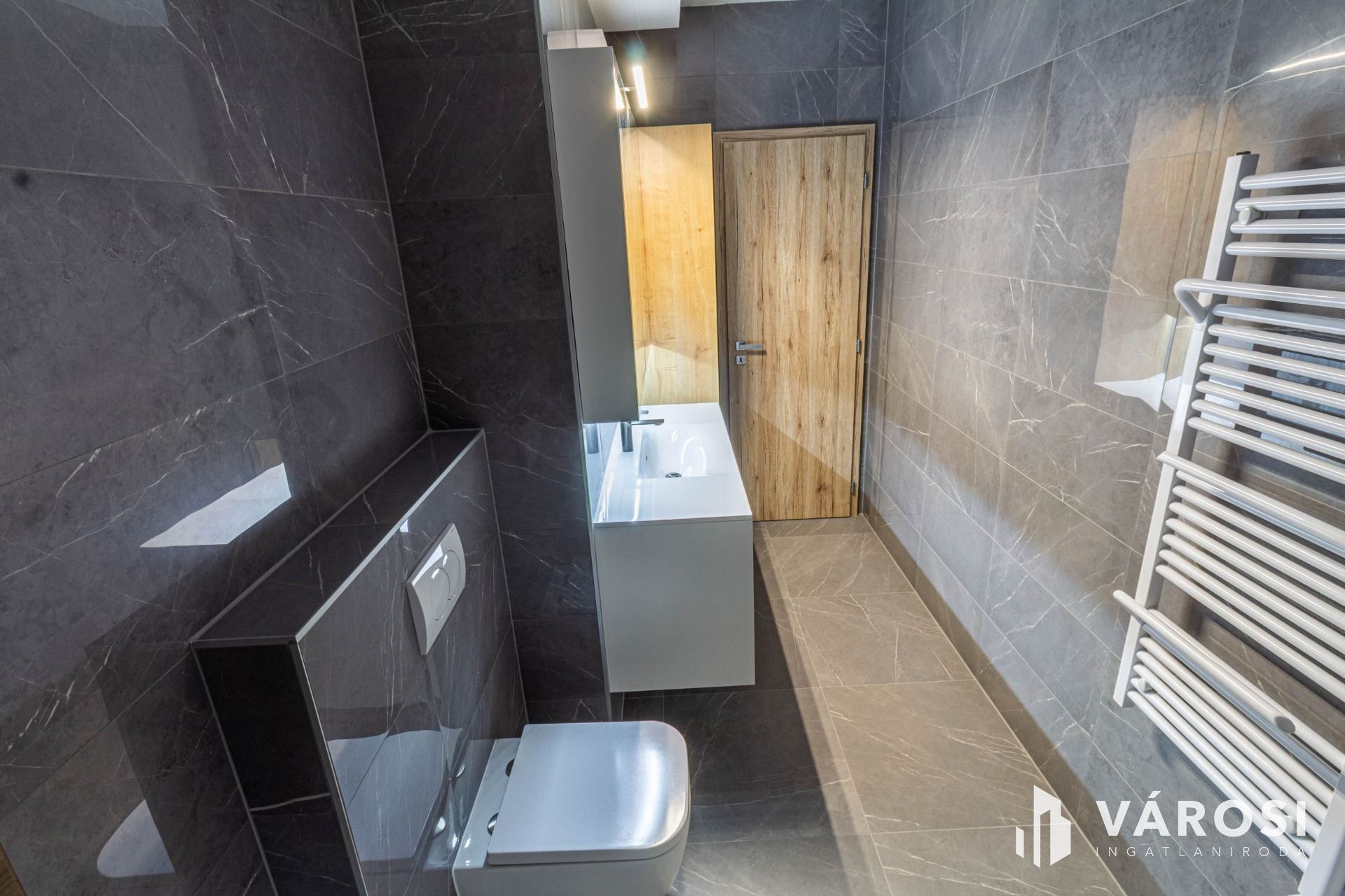 A lakás belső színei, a csempe és a bútorok harmonikus, kellemes összhangja nyugodt, megnyugtató és egyben elegáns légkört teremt, ami az otthonosság érzését azonnal átadja.