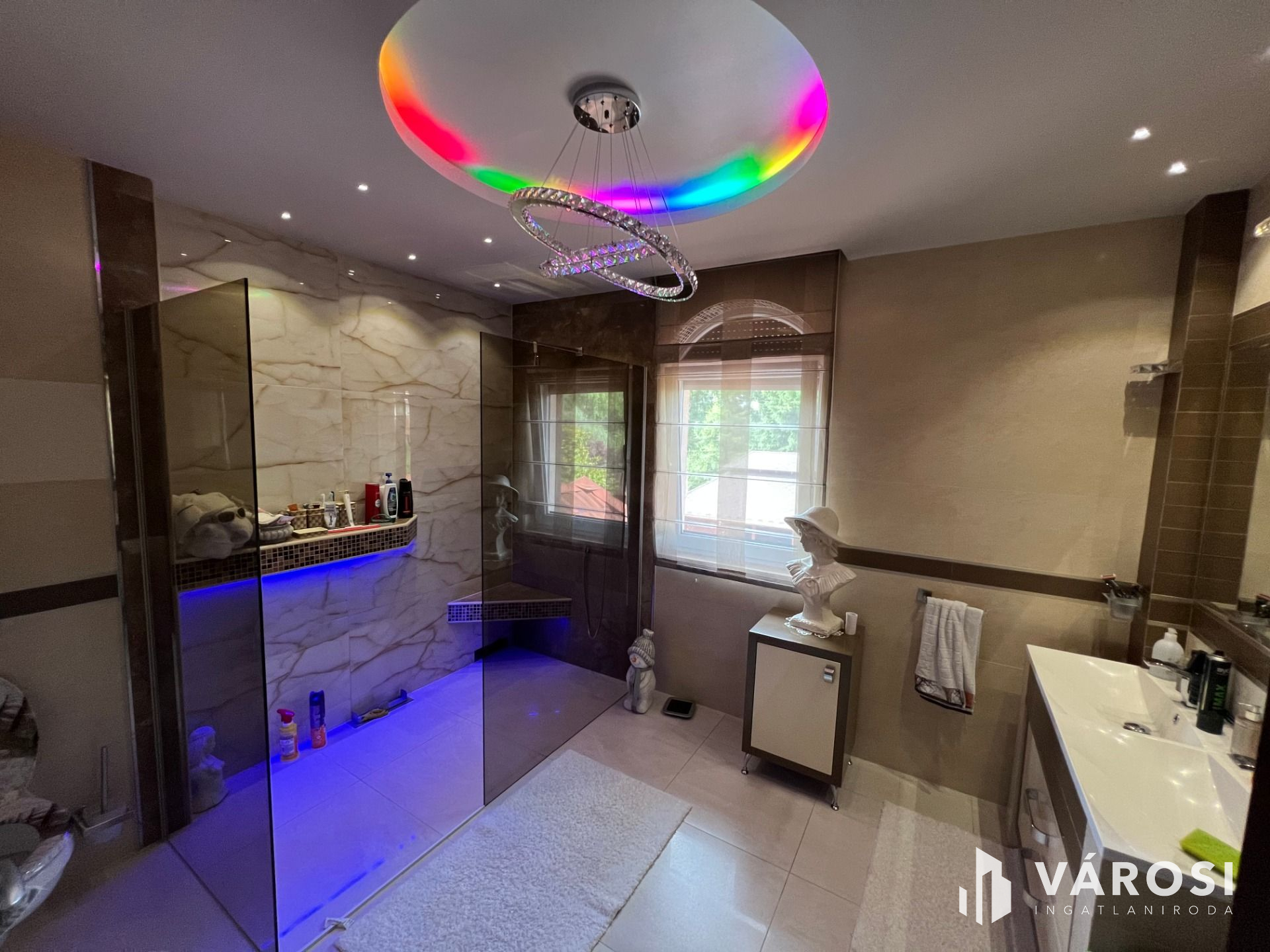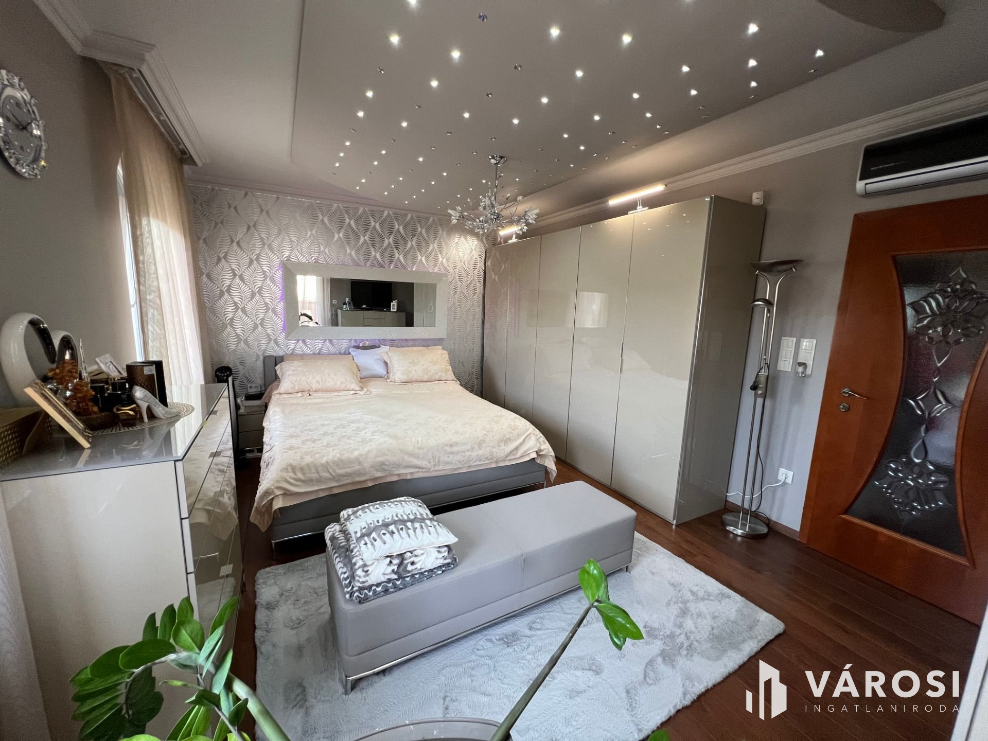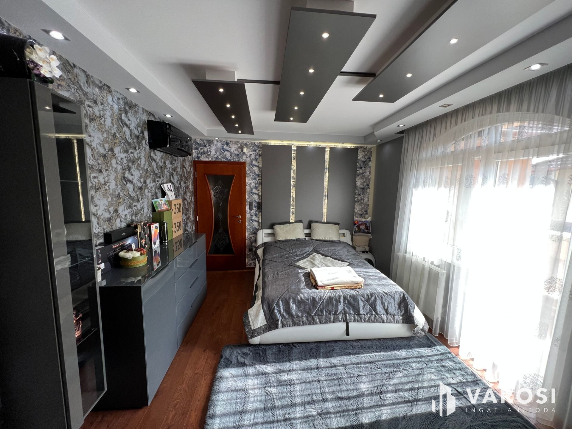 --个332平方米的独立豪华物业出售Liget住宅公园,德布勒森的突出部分。房子的低层有一个客厅,餐厅,厨房,一个入口大厅,和一个厕所。自然,也有一个大型双车库和一楼的露台。在上层,有一个很大的空间,从那里你可以到达三间卧室和两个大浴室。上层还设有衣柜、洗衣房和厨房,每间卧室都设有露台。该地段很大,760平方米,再加上另一个类似规模的地段是围栏关闭在后面。花园是美丽的园景,也有一个美丽的露台,配备了一切。露台前的温水游泳池为居民提供了一个舒适的豪华感觉在家里。房子有很高的技术含量,并配备了所有的额外设施,配套齐全。位于德布勒森最精英的一部分,周围环绕着高端、美丽的物业。