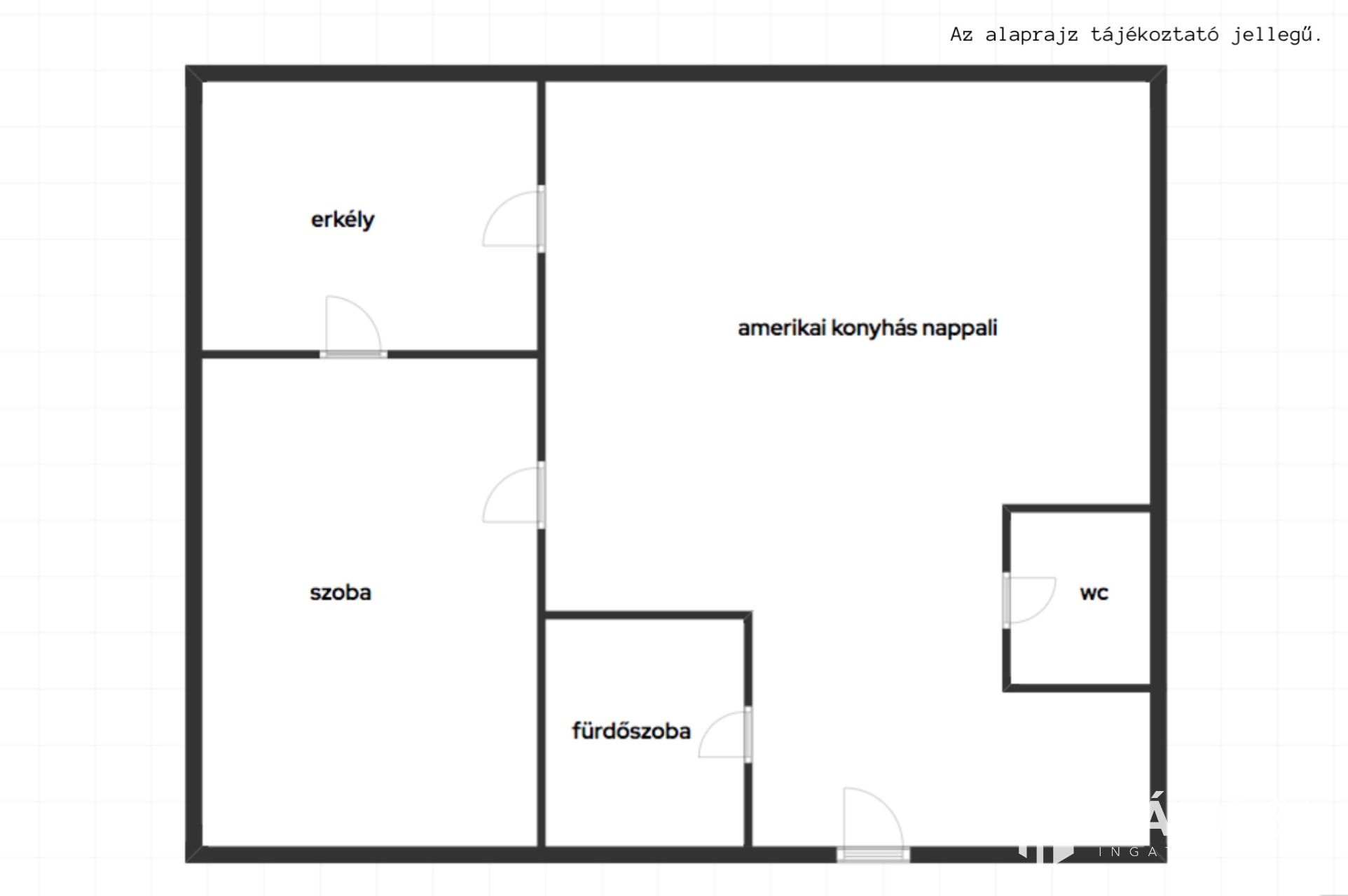 - Amerikai konyhás nappali + 1 szoba, fürdő és wc klün helyiségben, erkély