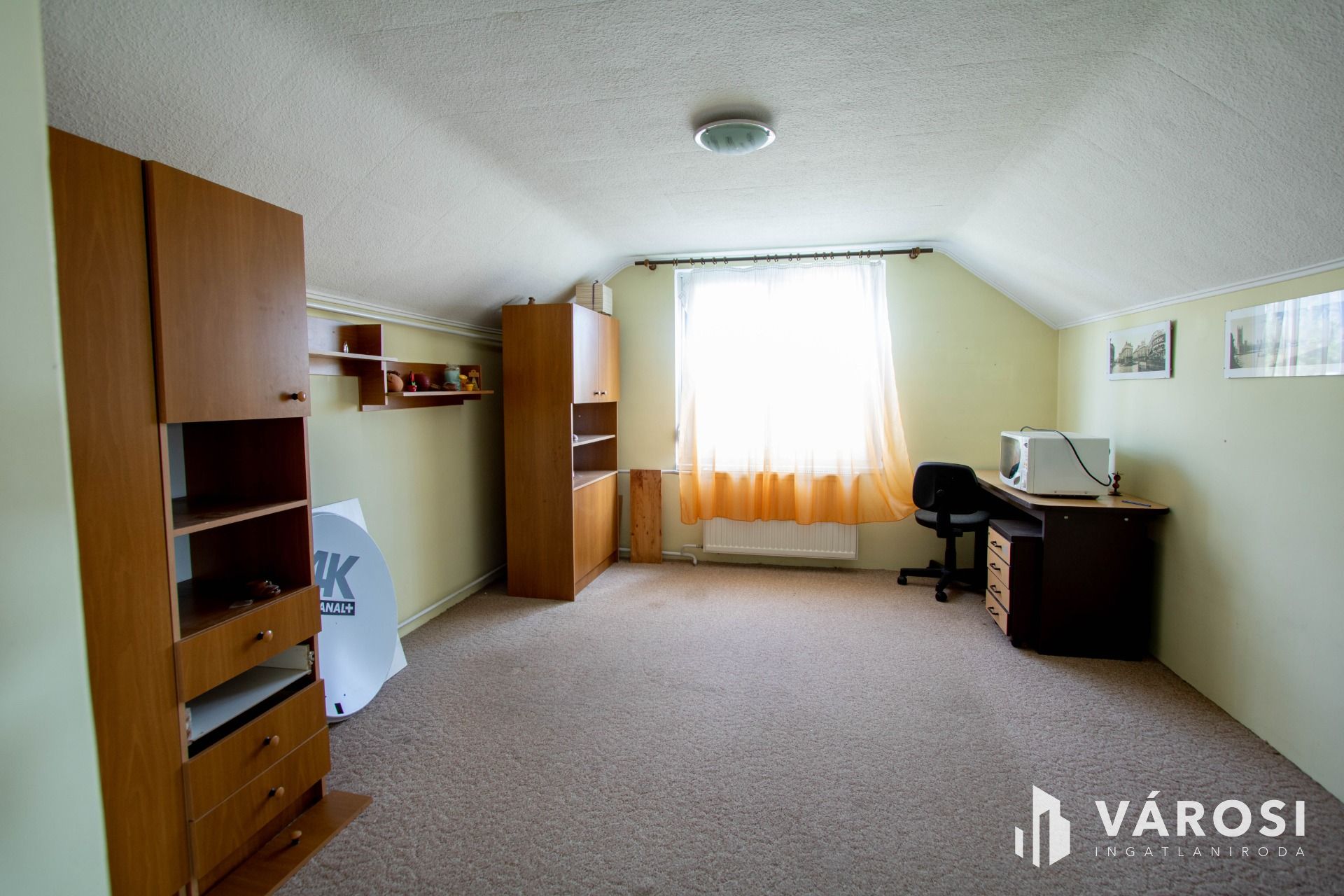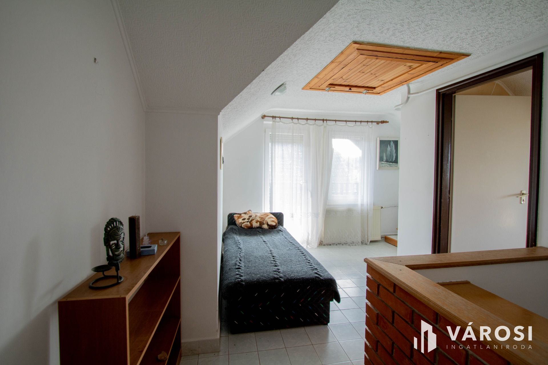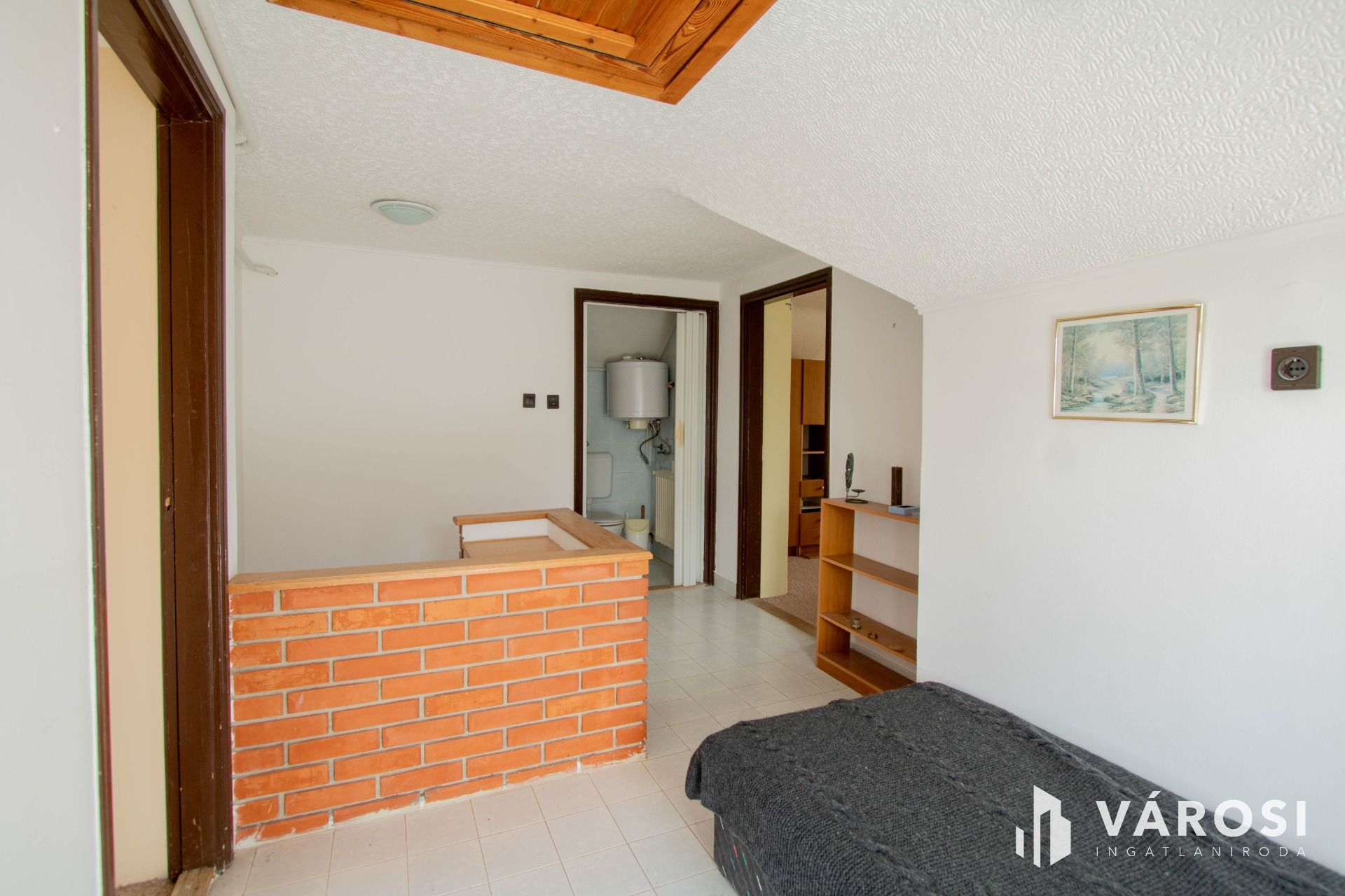 A ház tetőtér része be lett építve, itt kettő szoba és egy fürdőszoba + WC, meg egy kisebb nappali került kialakításra.