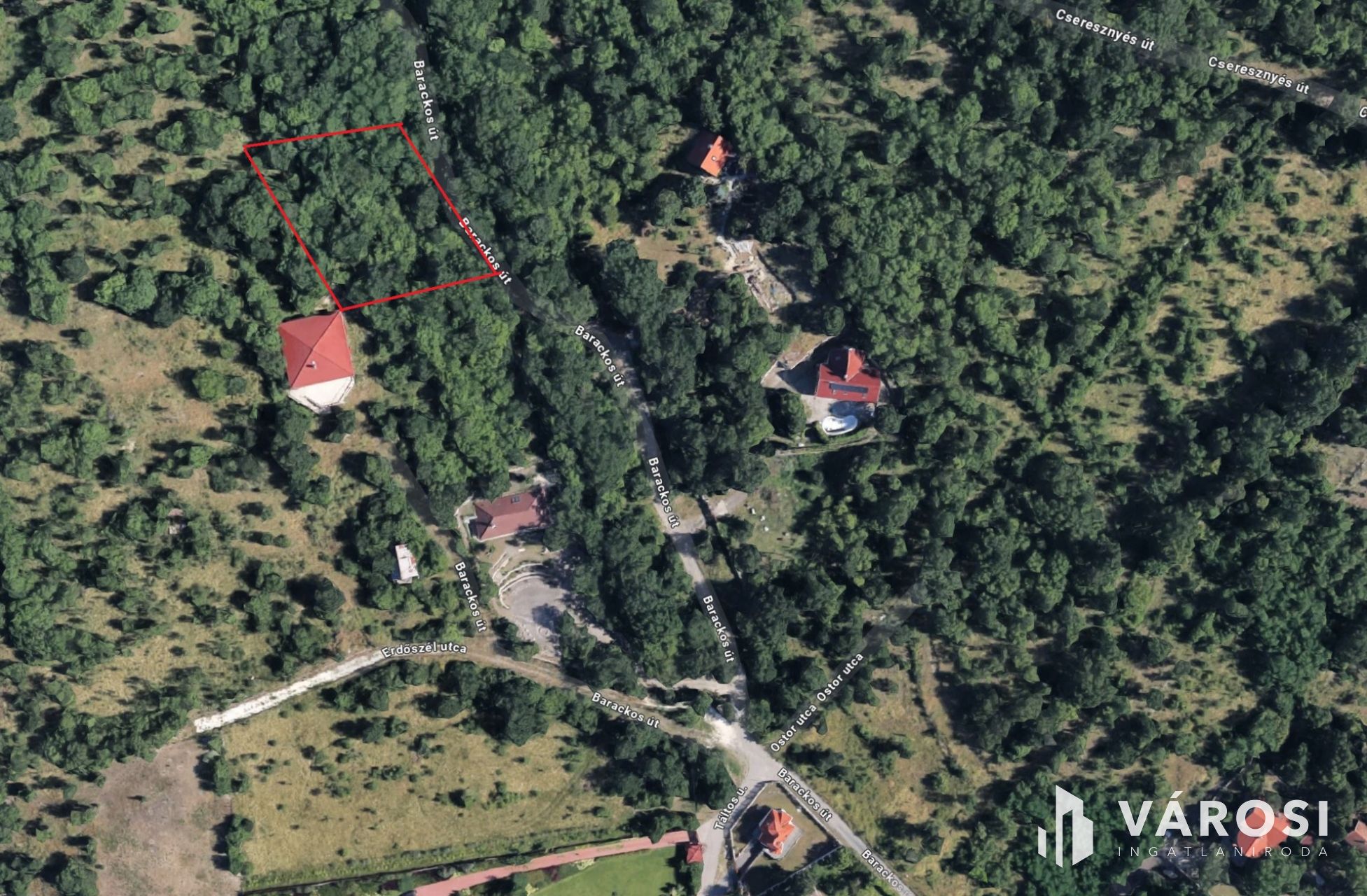 A telek az utca utolsó telkei között helyezkedik el, így minimális a forgalom és a szomszédok száma. A környéket elsősorban erdő és zöldterületek határozzák meg, ami ritka nyugalmat és privát életérzést biztosít.