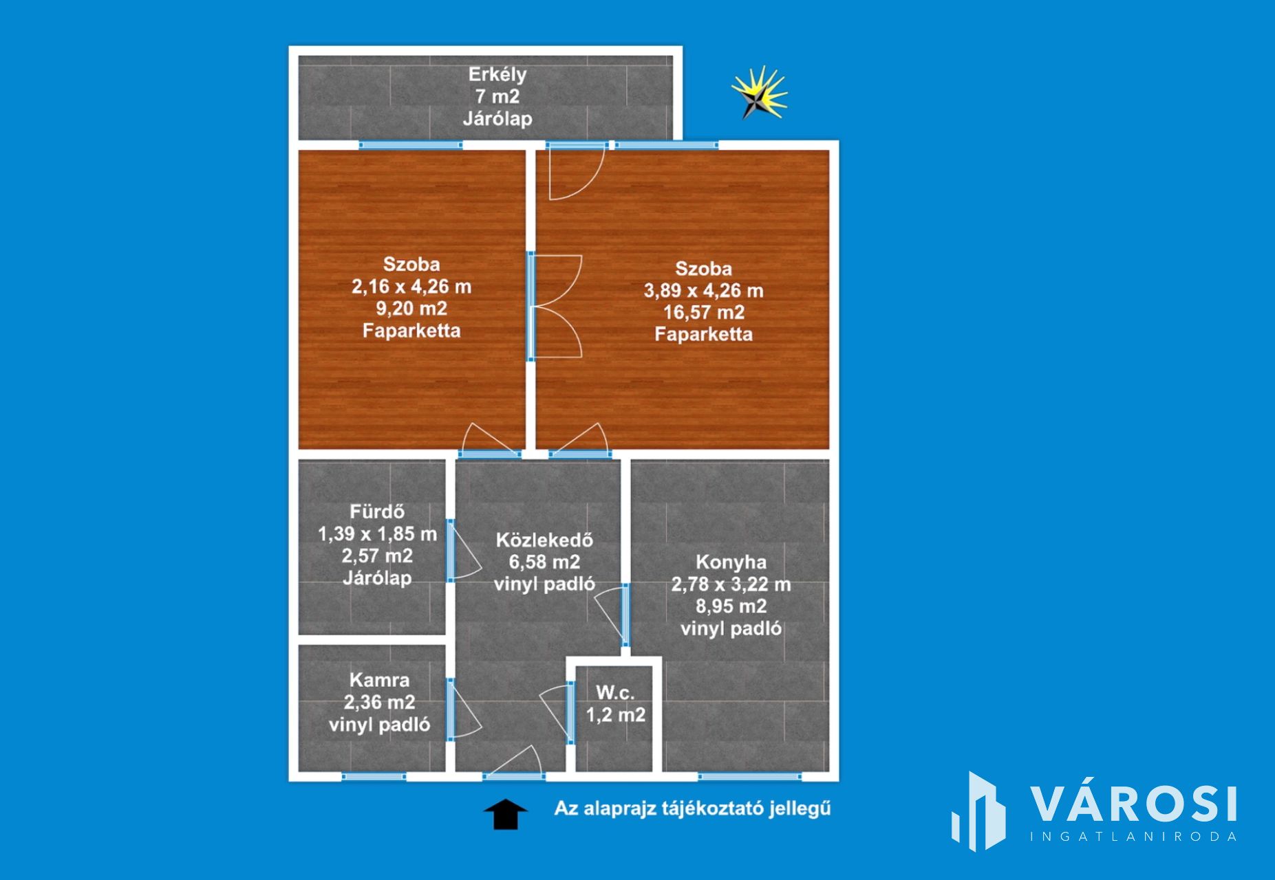 A lakás délkeleti tájolása, miatt rendkívül napfényes ingatlan.