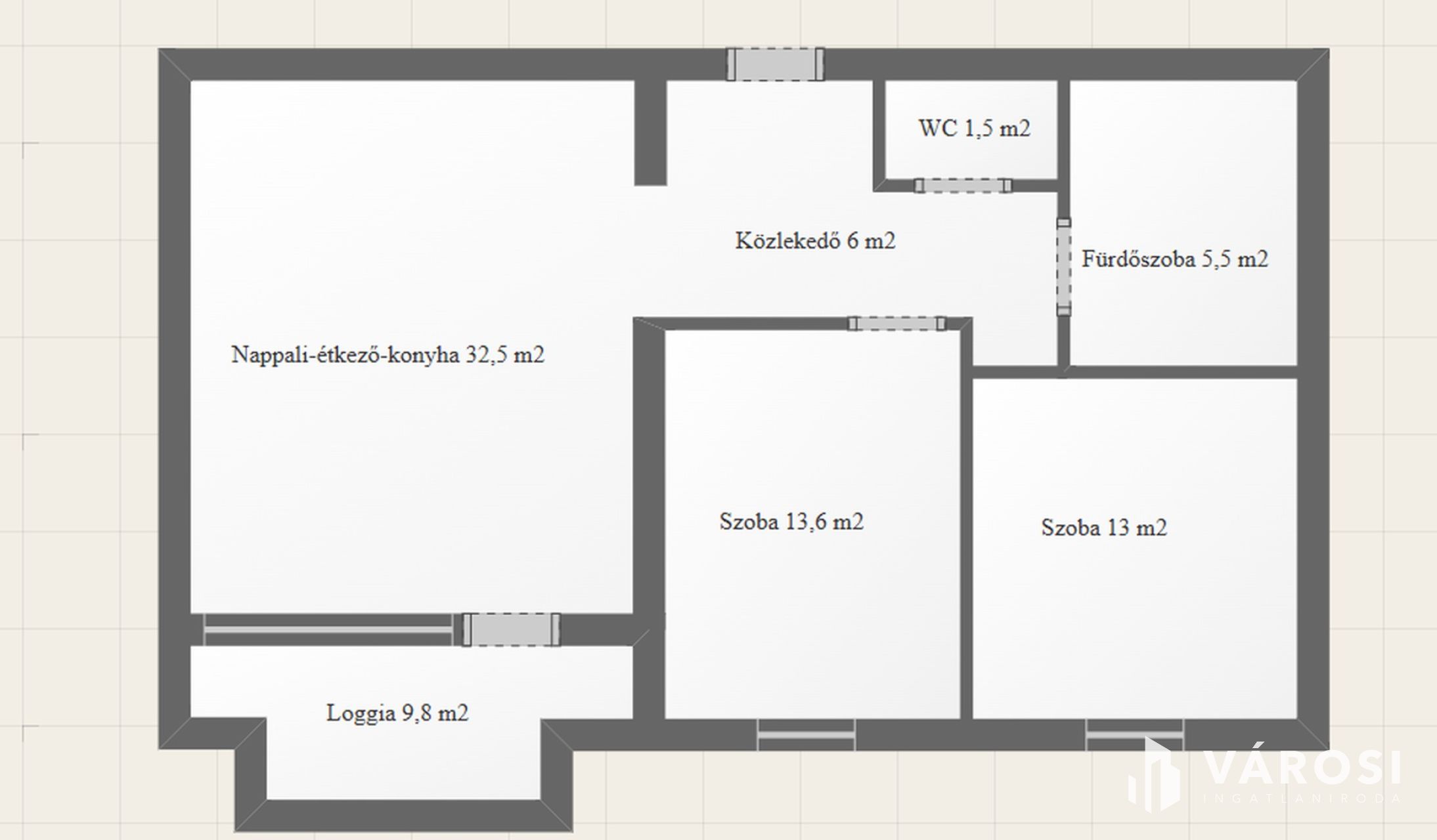 • valamint egy tágas, közel 10 m²-es loggia, amely a nappaliból közvetlenül elérhető.