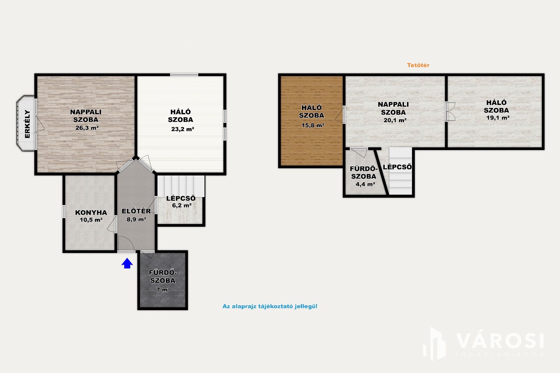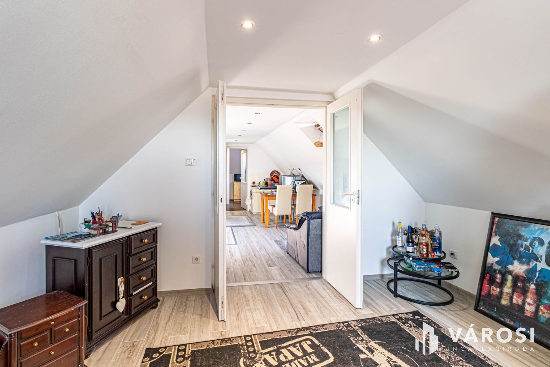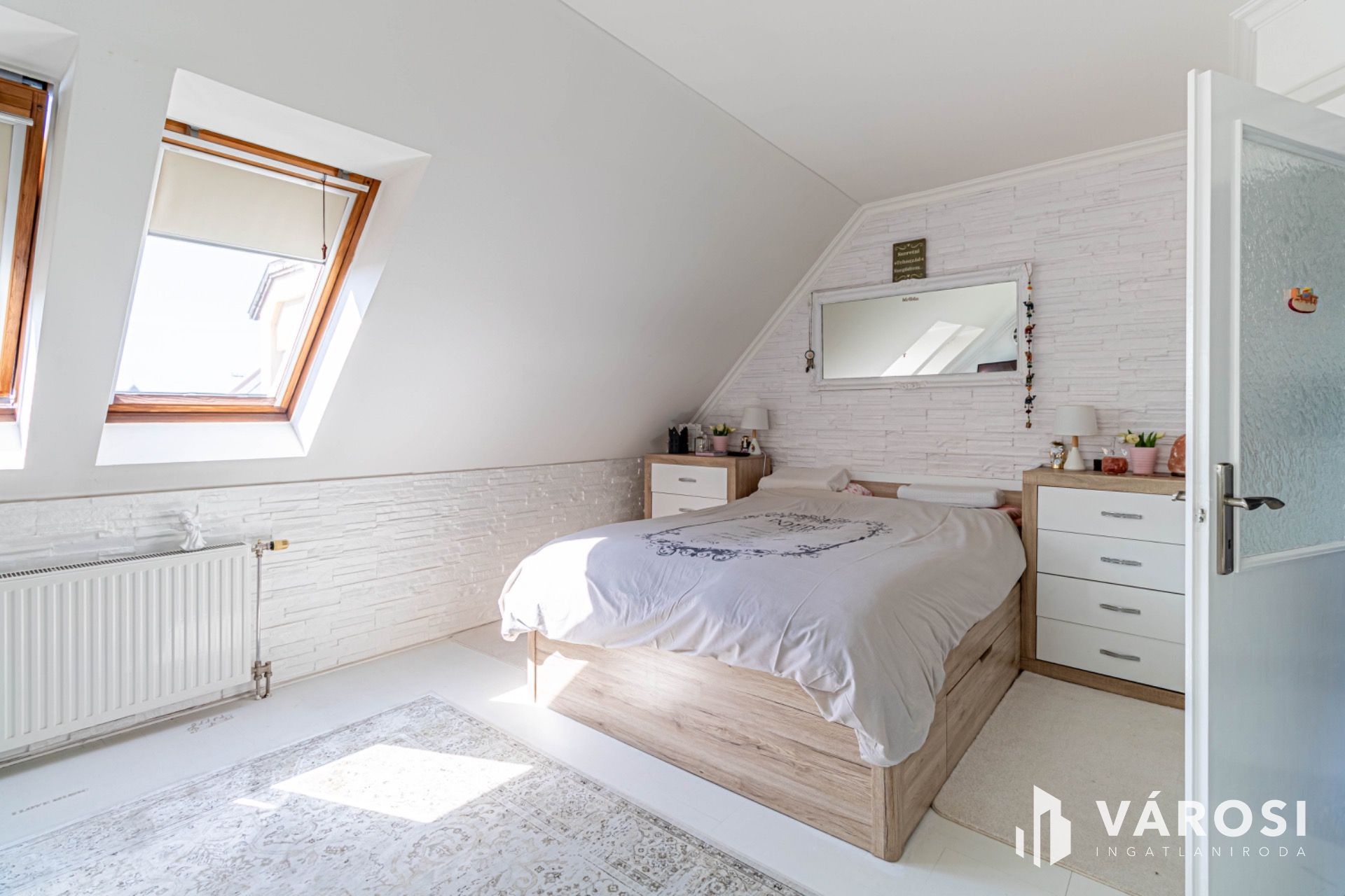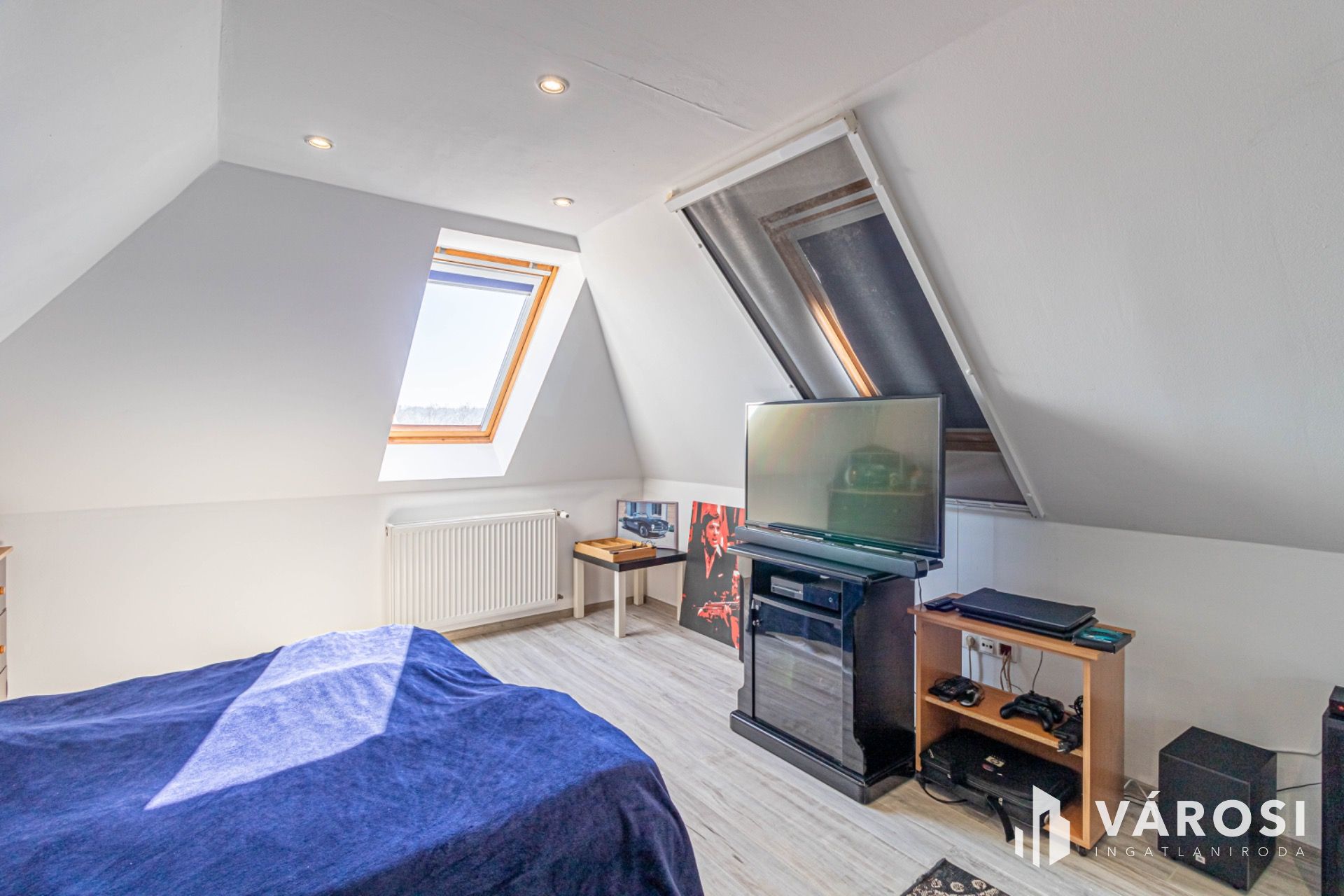 A tetőtérbe lépve egy második, otthonos nappali várja az új tulajdonosokat, valamint két további hálószoba és egy második, kényelmes fürdőszoba WC-vel. Ez a tökéletes elrendezés ideális a gyermekek különterének kialakítására vagy dolgozószoba létrehozására.