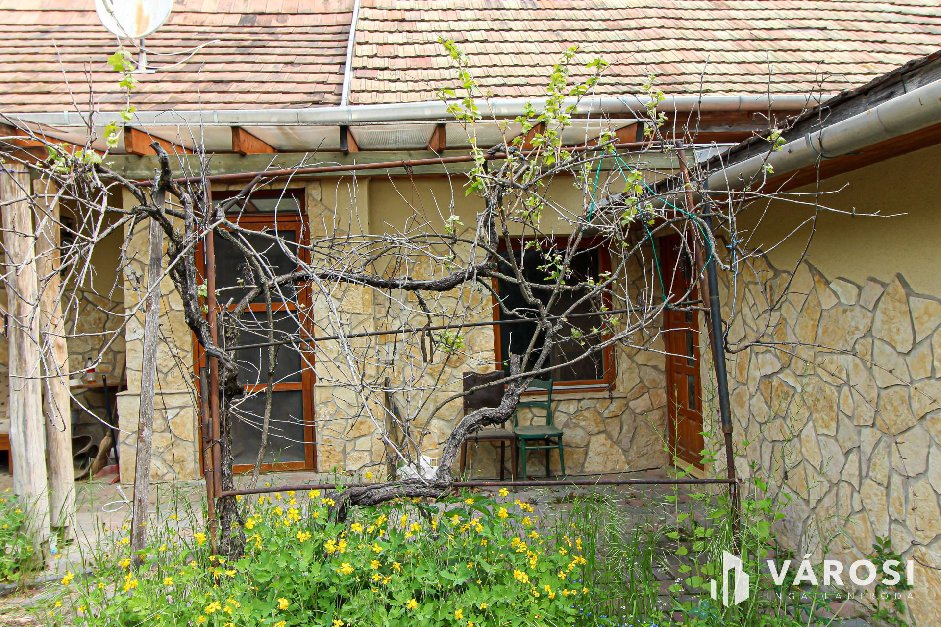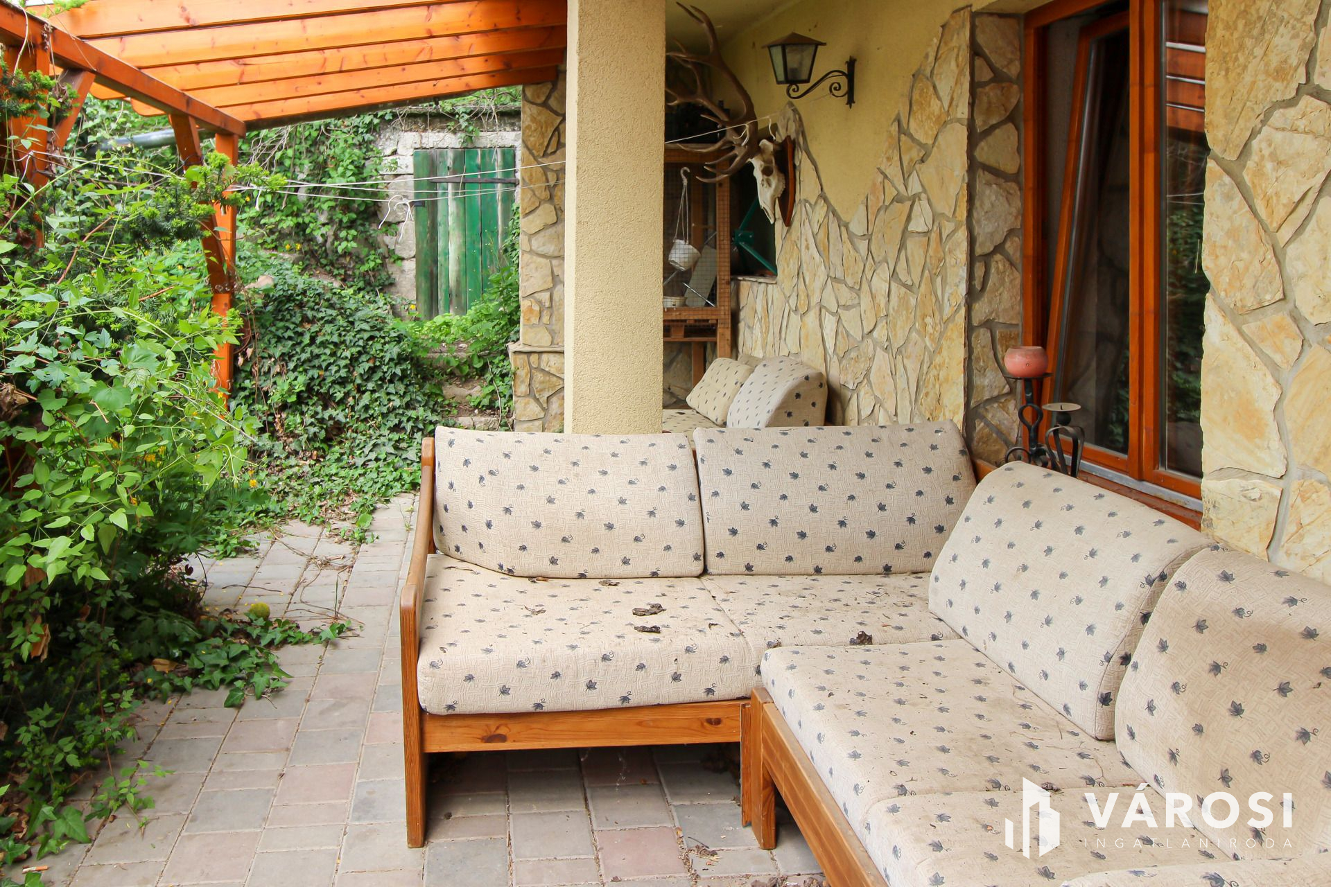 Az igazán egyedi hangulatú kialakítással rendelkező családi otthon, átlagos állapotú, kényelmes terek és kellemes, nyugodt környezet jellemzi. A nagy méretű telken egy gépkocsi tárolására alkalmas zárt garázs , illetve két gépkocsi beállására alkalmas fedett garázs, továbbá egy pince, ásott kút, és egy melléképület helyezkedik.
