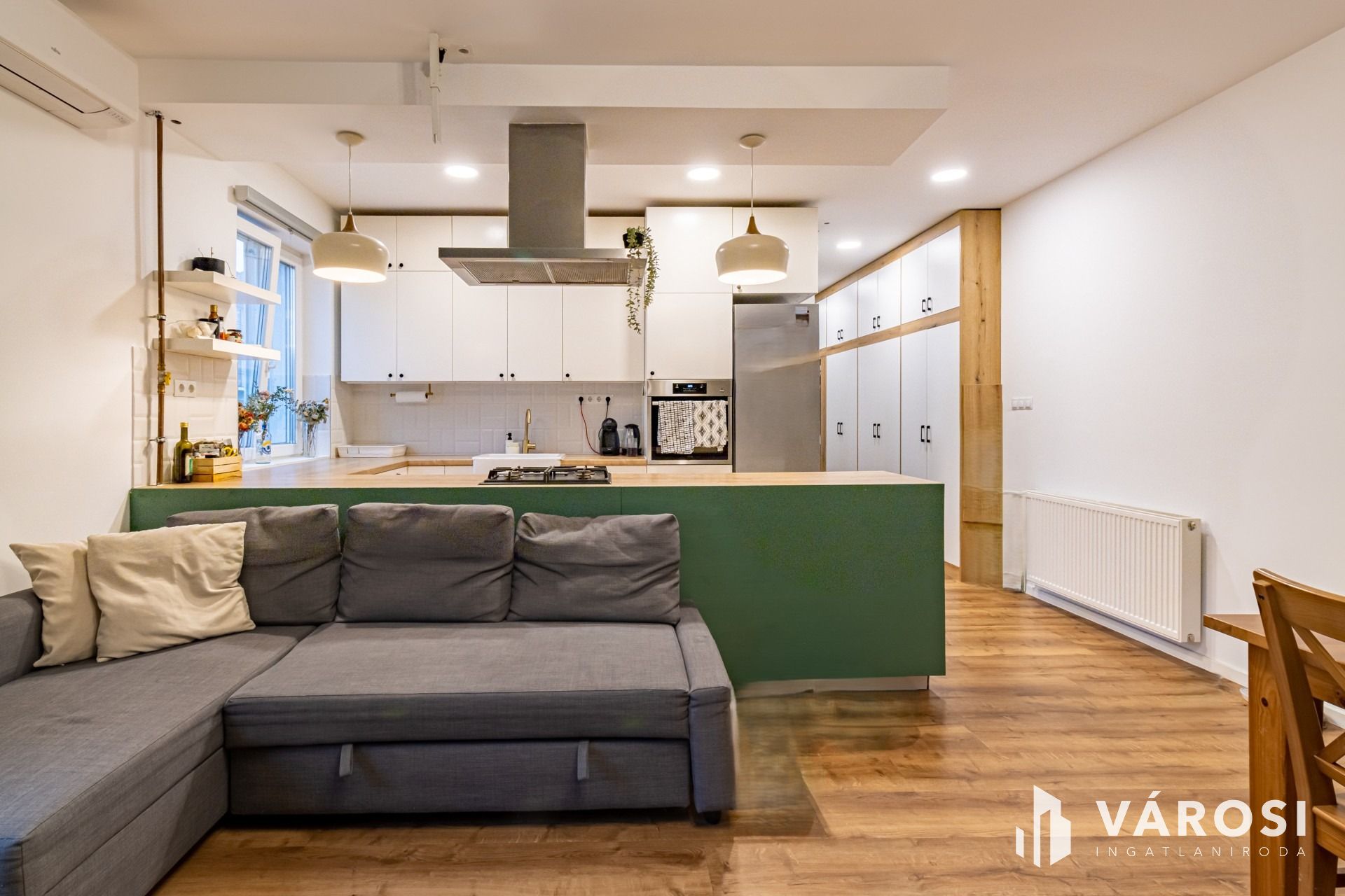 Beépített gardróbszekrényekkel, légkondival, gépekkel, teljes berendezéssel kerül értékesítésre.