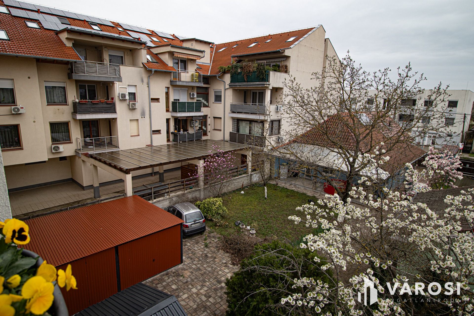 Built in 2007, this insulated building features a combination of sliding formwork and internal brick masonry. All units have separate land registry numbers and individual utility meters. Heating is provided by 4 top-tier Viessmann boilers located on the roof, while common area energy needs are supplied by solar panels. The apartment is equipped with 2 air conditioning units.