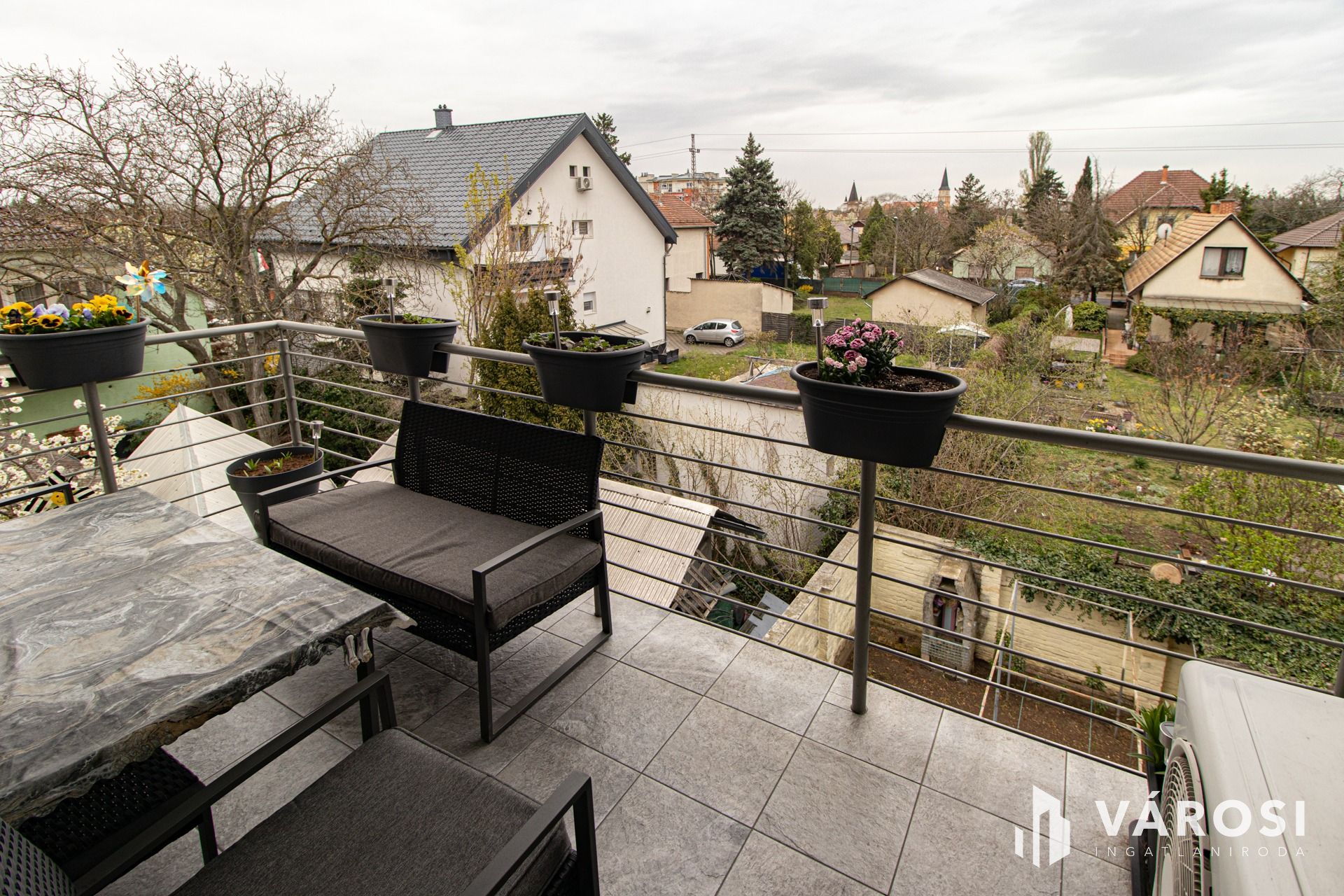 Superb transport links: bus stops (166, 254e, 255e, 266) are just steps away, and the train station is a few minutes' walk. KÖKI is 16 minutes by car, and the M0 motorway is 8 minutes away. The neighborhood is quiet and safe, with an excellent residential community.