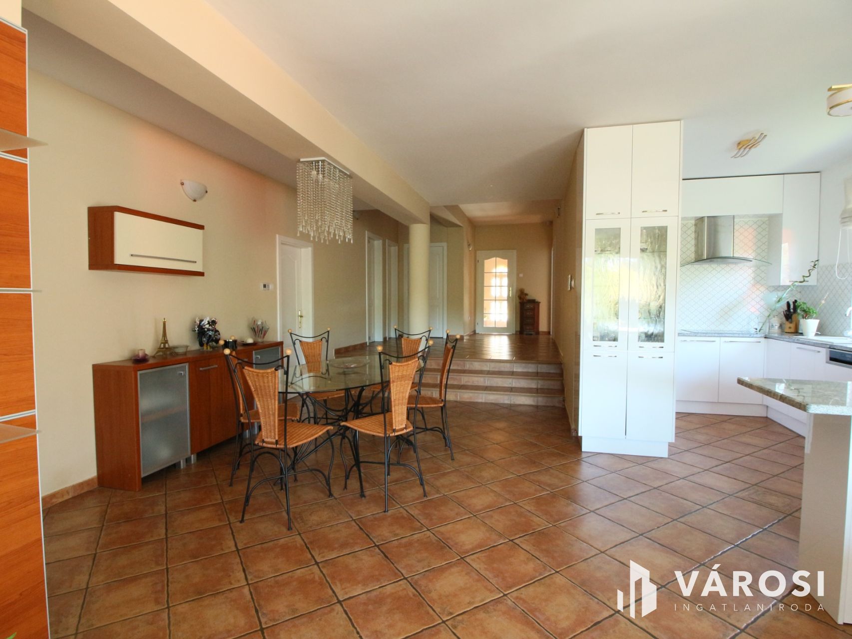 Pár lépcsőfokkal lejjebb elénk tárula a nappali,konyha étkező harmonikus együttese.