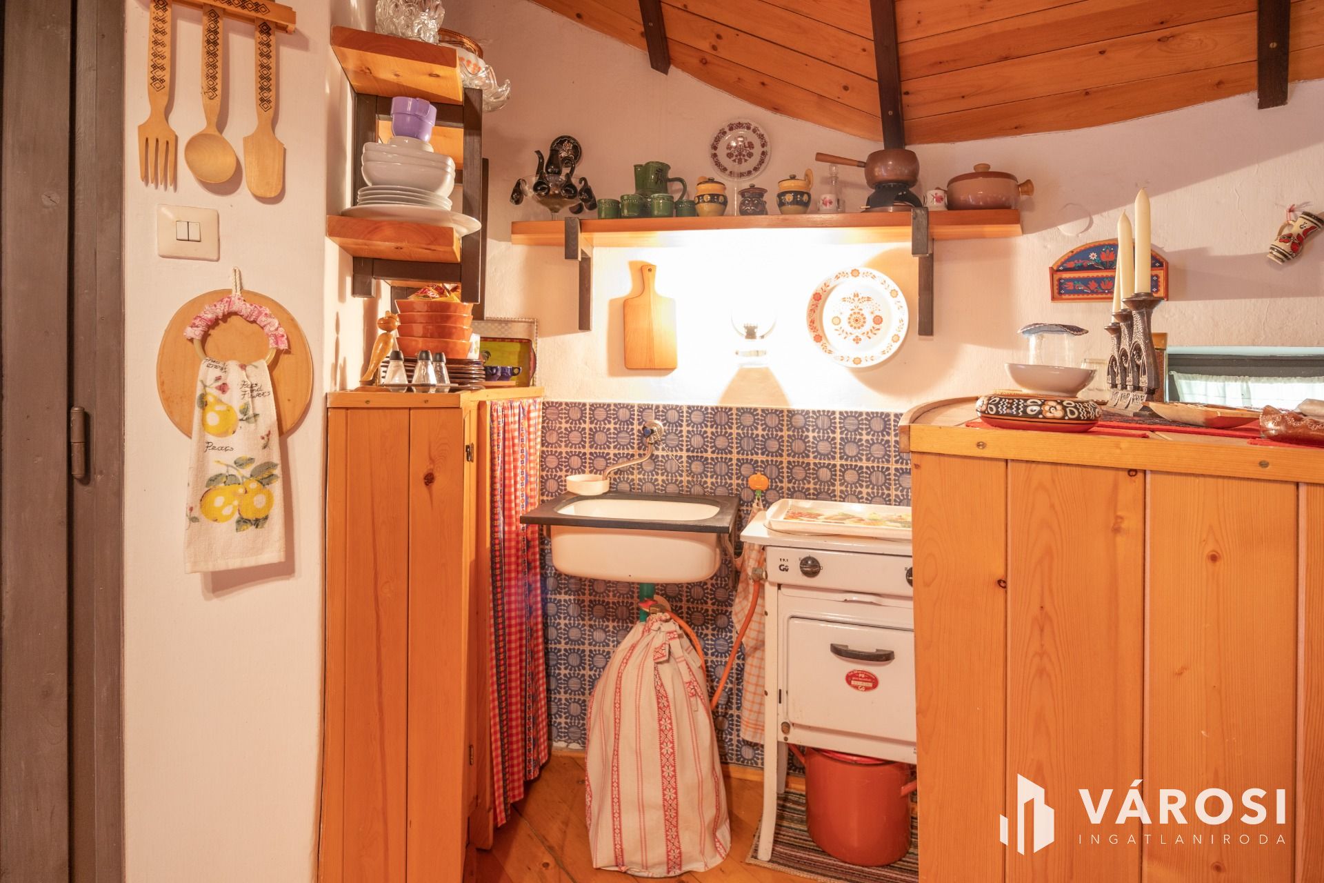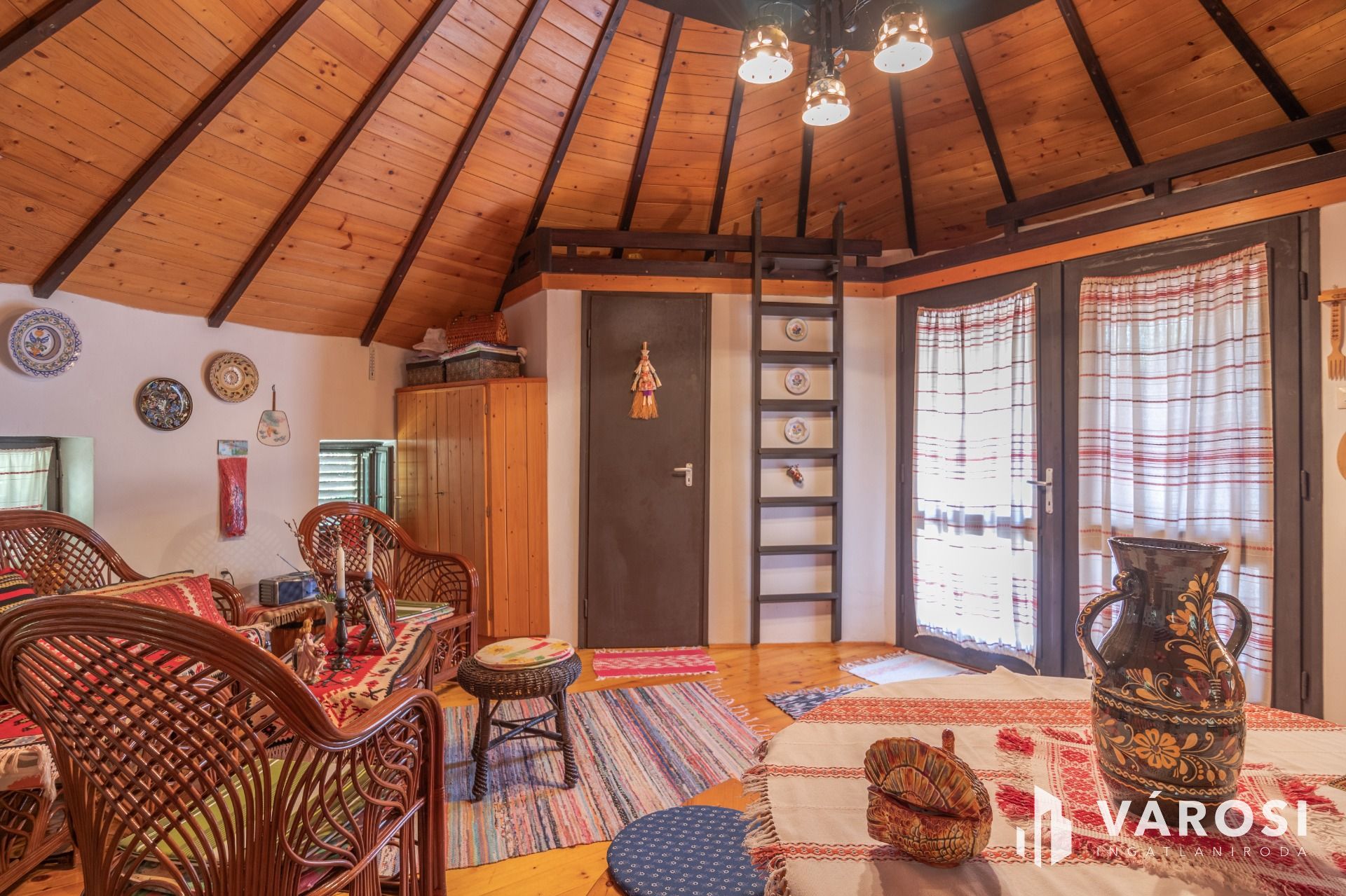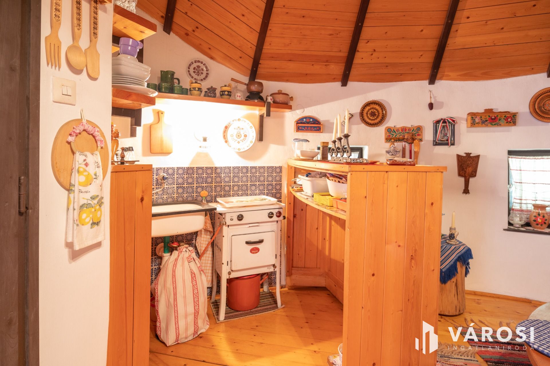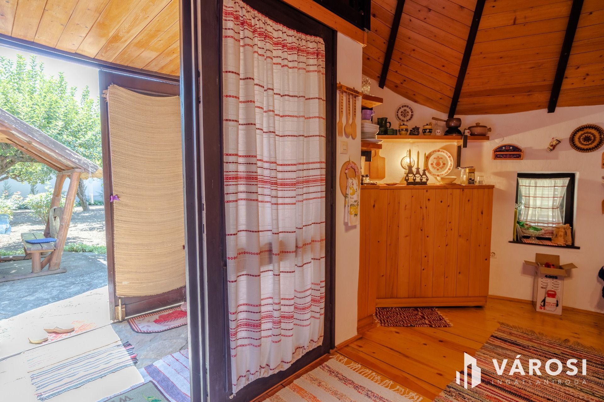 Egy egyedi kivitelezésű '70-es végén Ybl díjas tervező által tervezett 30 m² alapterületű nádfedeles, téglából épült házikó található a telken, amit akár vendégháznak is lehet használni. A szélfogóból belépve egy légtérben egy tágas szoba, ötletes kinyitható konyharésszel, a galérián két fő kényelmesen tud aludni. Fürdőszobában tuskád zuhanyzóval, mosdóval és WC-vel ellátott.
