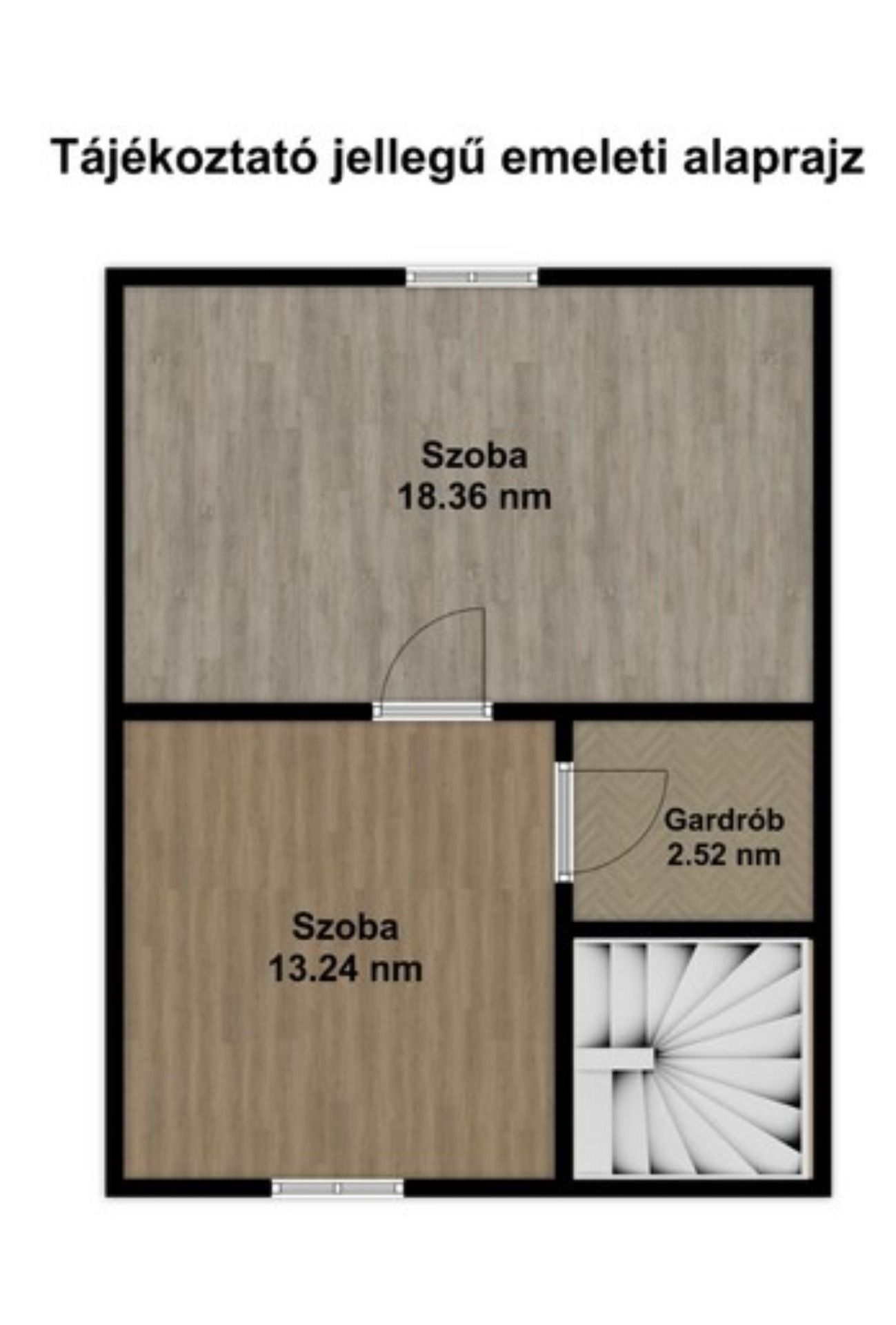 - az emeleten: közlekedő, gardrób, egy nagy szoba ( 3 szoba kialakítható)