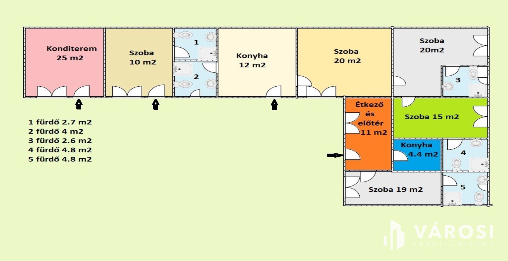 9 db szoba, mindegyik saját fürdőszobával és klíma berendezéssel ellátva